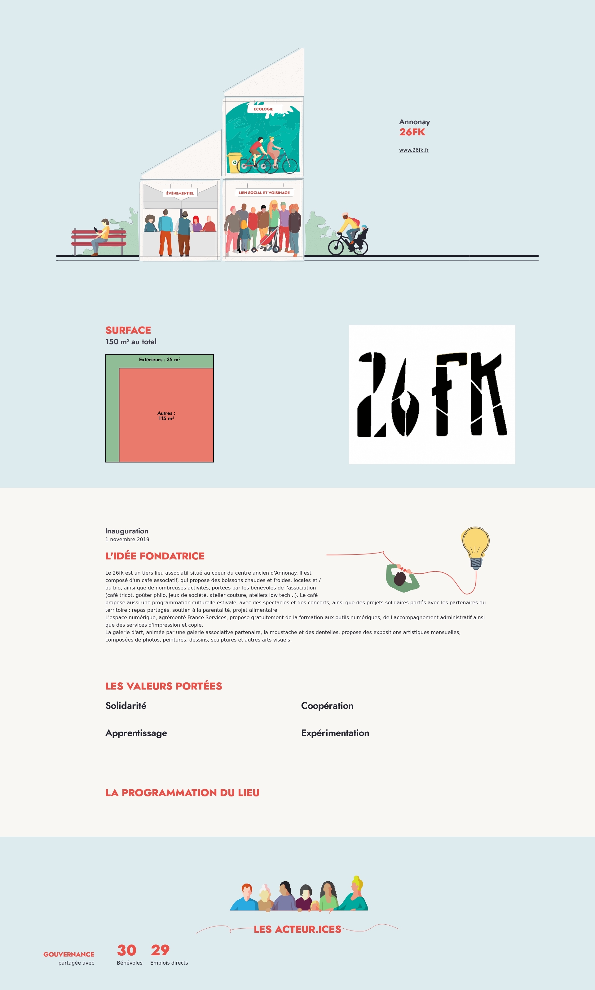 Le 26fk est un tiers lieu associatif situé au coeur du centre ancien d'Annonay. Il est composé d'un café associatif, qui propose des boissons chaudes et froides, locales et / ou bio, ainsi que de nombreuses activités, portées par les bénévoles de l'association (café tricot, goûter philo, jeux de société, atelier couture, ateliers low tech...). Le café propose aussi une programmation culturelle estivale, avec des spectacles et des concerts, ainsi que des projets solidaires portés avec les partenaires du territoire : repas partagés, soutien à la parentalité, projet alimentaire.