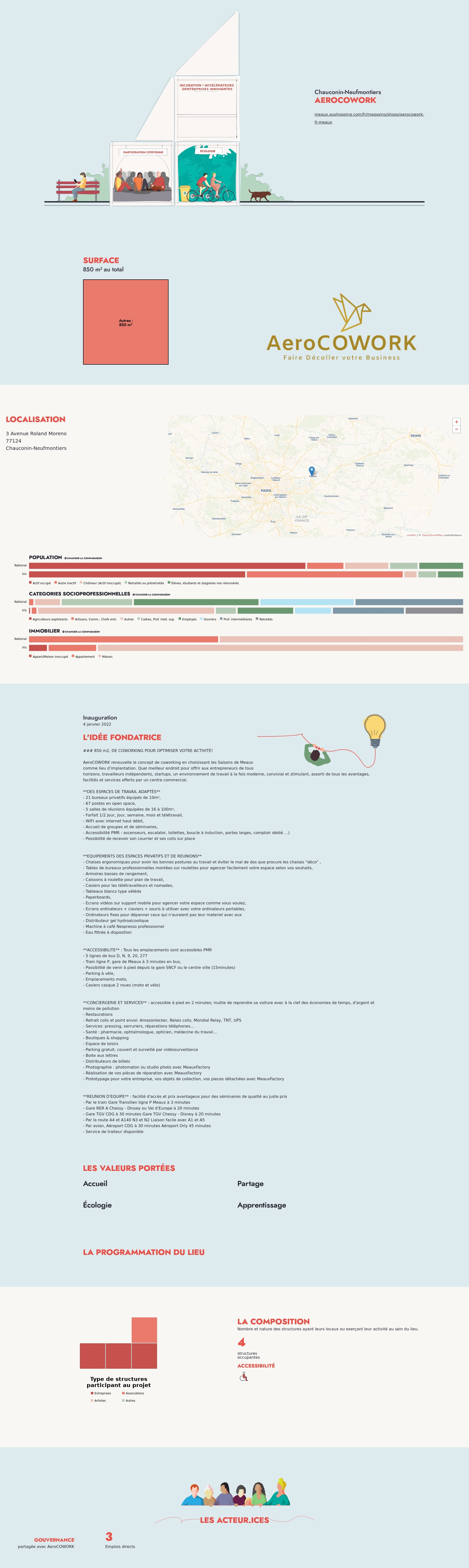 AeroCOWORK renouvelle le concept de coworking en choisissant les Saisons de Meaux comme lieu d’implantation. Quel meilleur endroit pour offrir aux entrepreneurs de tous horizons, travailleurs indépendants, startups, un environnement de travail à la fois moderne, convivial et stimulant, assorti de tous les avantages, facilités et services offerts par le centre commercial des Saisons de Meaux.