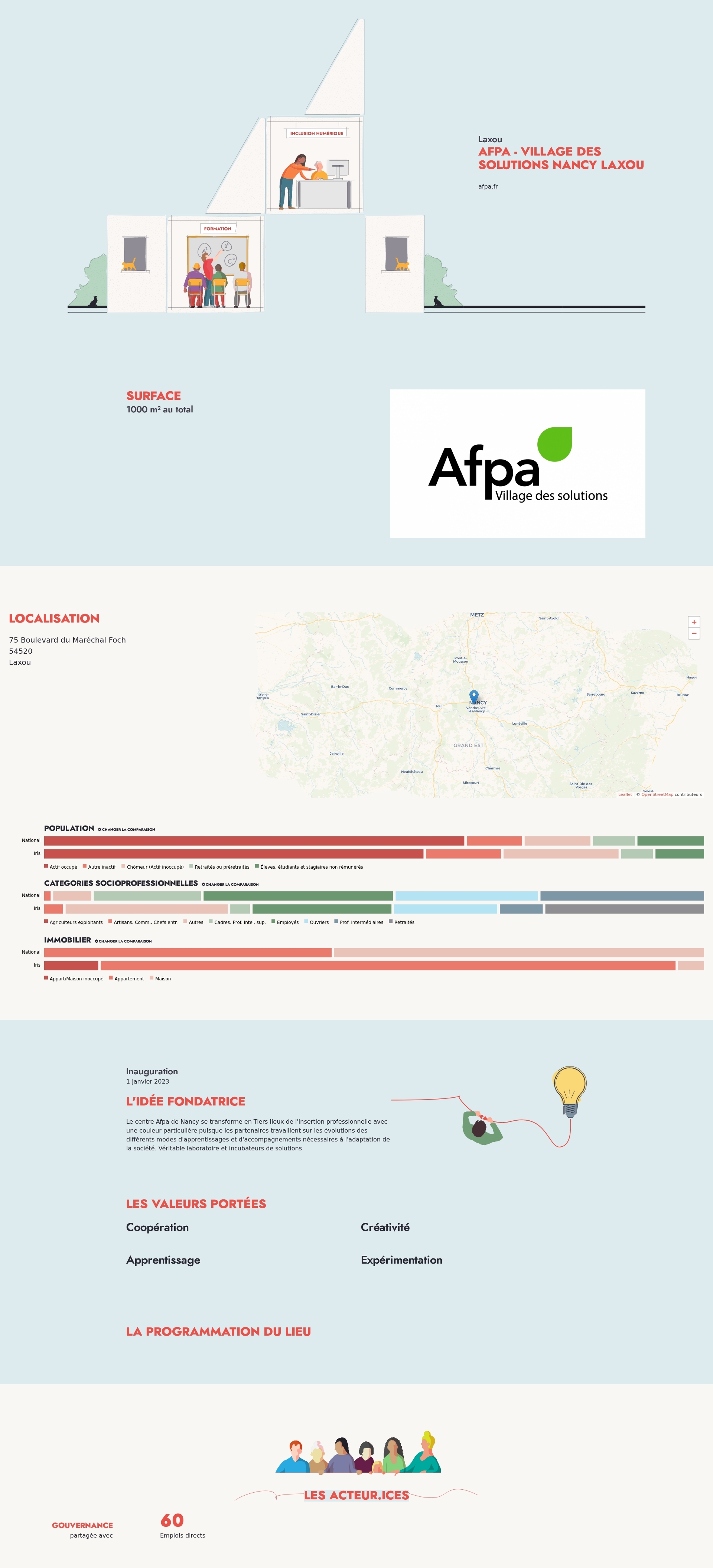 Le centre Afpa de Nancy se transforme en Tiers lieux de l'insertion professionnelle avec une couleur particulière puisque les partenaires travaillent sur les évolutions des différents modes d'apprentissages et d'accompagnements nécessaires à l'adaptation de la société. Véritable laboratoire et incubateurs de solutions
