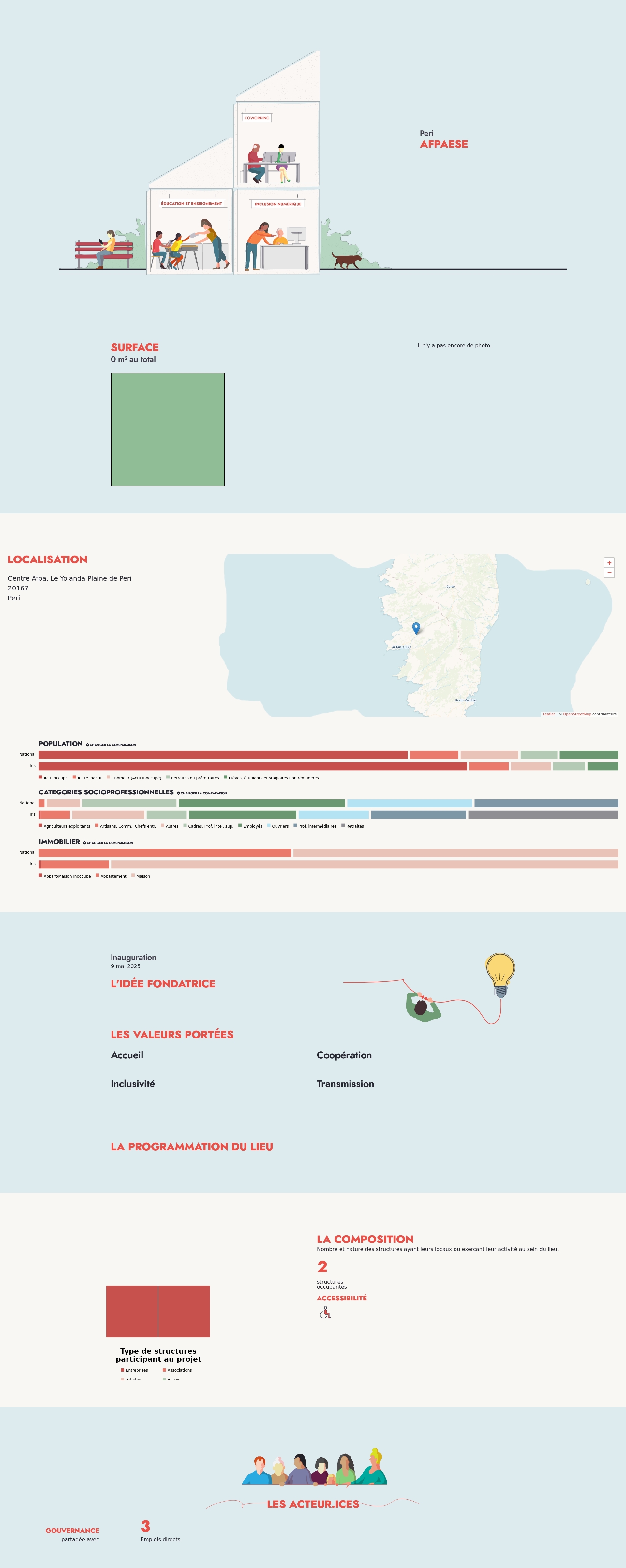 Nombre et nature des structures ayant leurs locaux ou exerçant leur activité au sein du lieu.