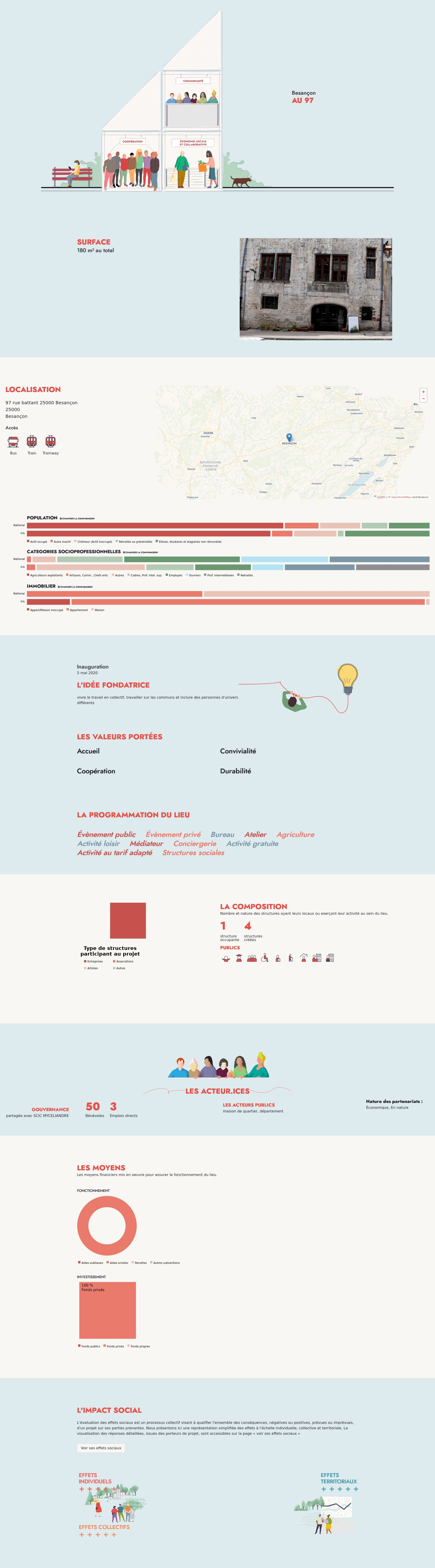 Nombre et nature des structures ayant leurs locaux ou exerçant leur activité au sein du lieu.