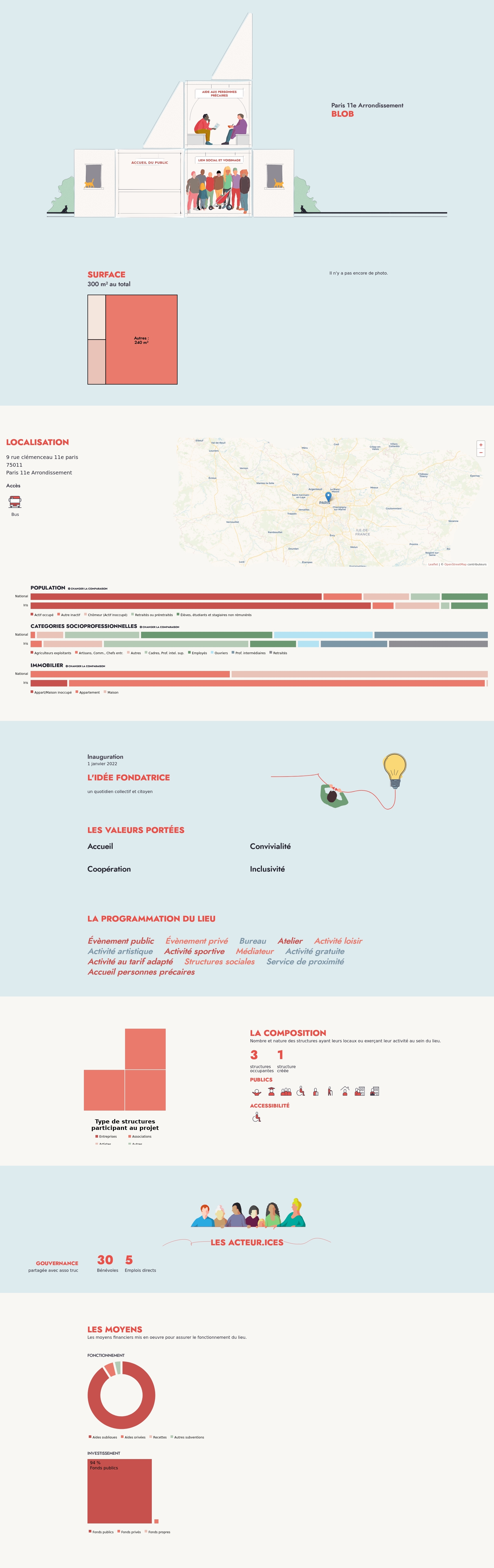 Nombre et nature des structures ayant leurs locaux ou exerçant leur activité au sein du lieu.
