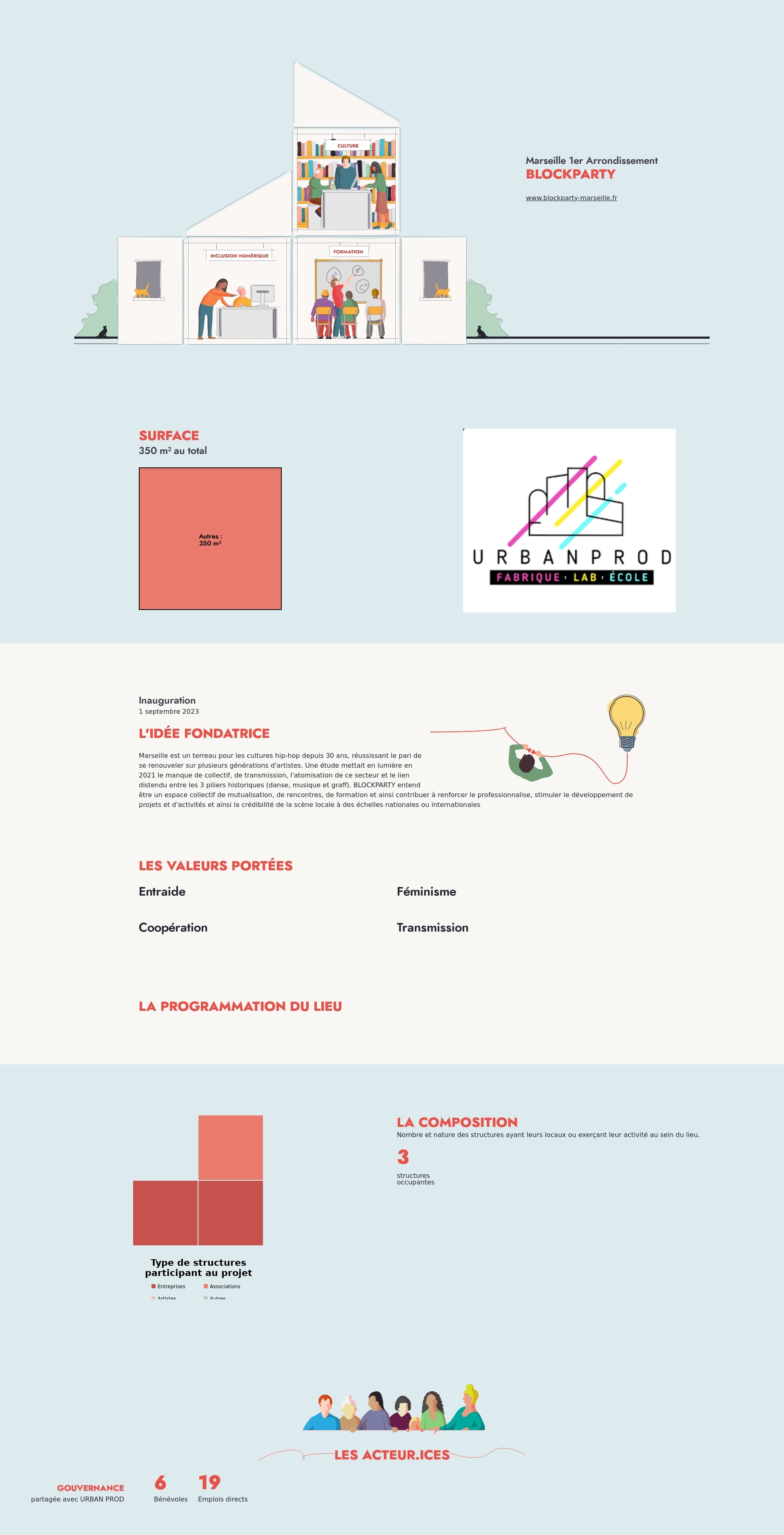 Marseille est un terreau pour les cultures hip-hop depuis 30 ans, réussissant le pari de se renouveler sur plusieurs générations d'artistes. Une étude mettait en lumière en 2021 le manque de collectif, de transmission, l'atomisation de ce secteur et le lien distendu entre les 3 piliers historiques (danse, musique et graff). BLOCKPARTY entend être un espace collectif de mutualisation, de rencontres, de formation et ainsi contribuer à renforcer le professionnalise, stimuler le développement de projets et d'activités et ainsi la crédibilité de la scène locale à des échelles nationales ou internationales