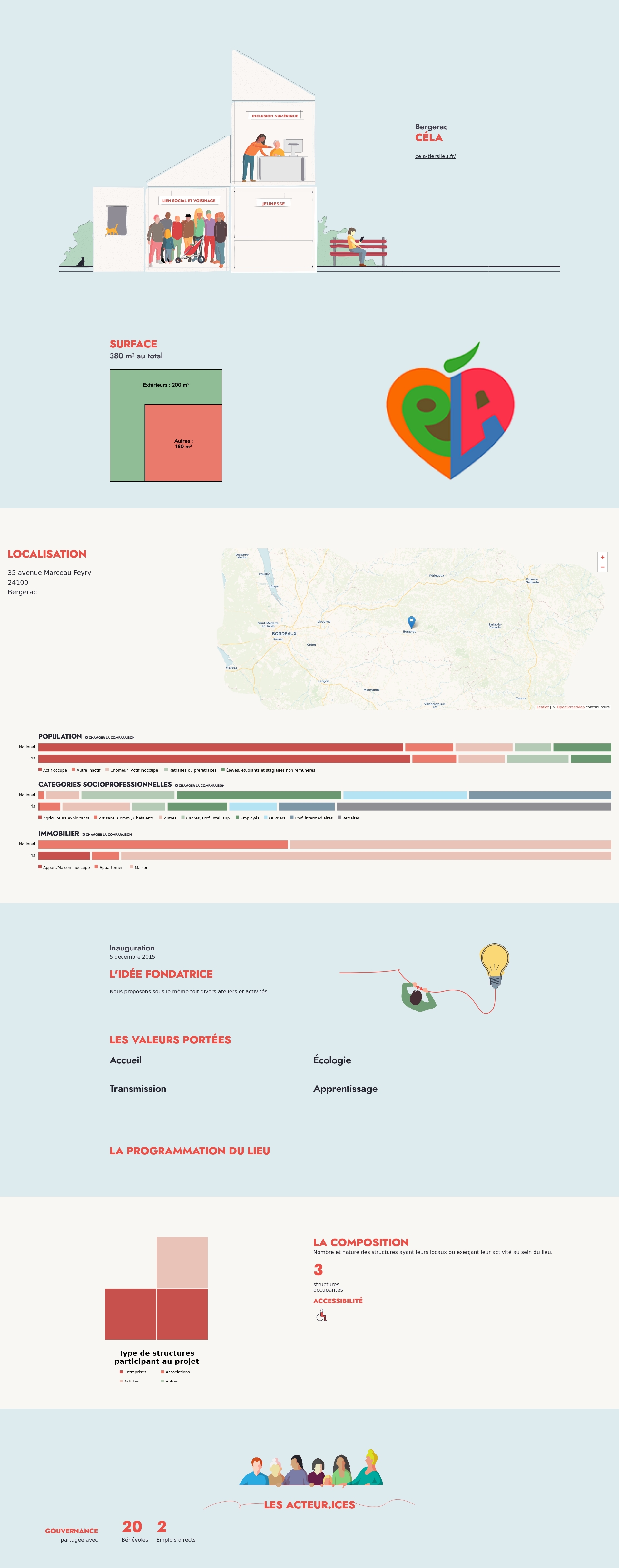 Nombre et nature des structures ayant leurs locaux ou exerçant leur activité au sein du lieu.