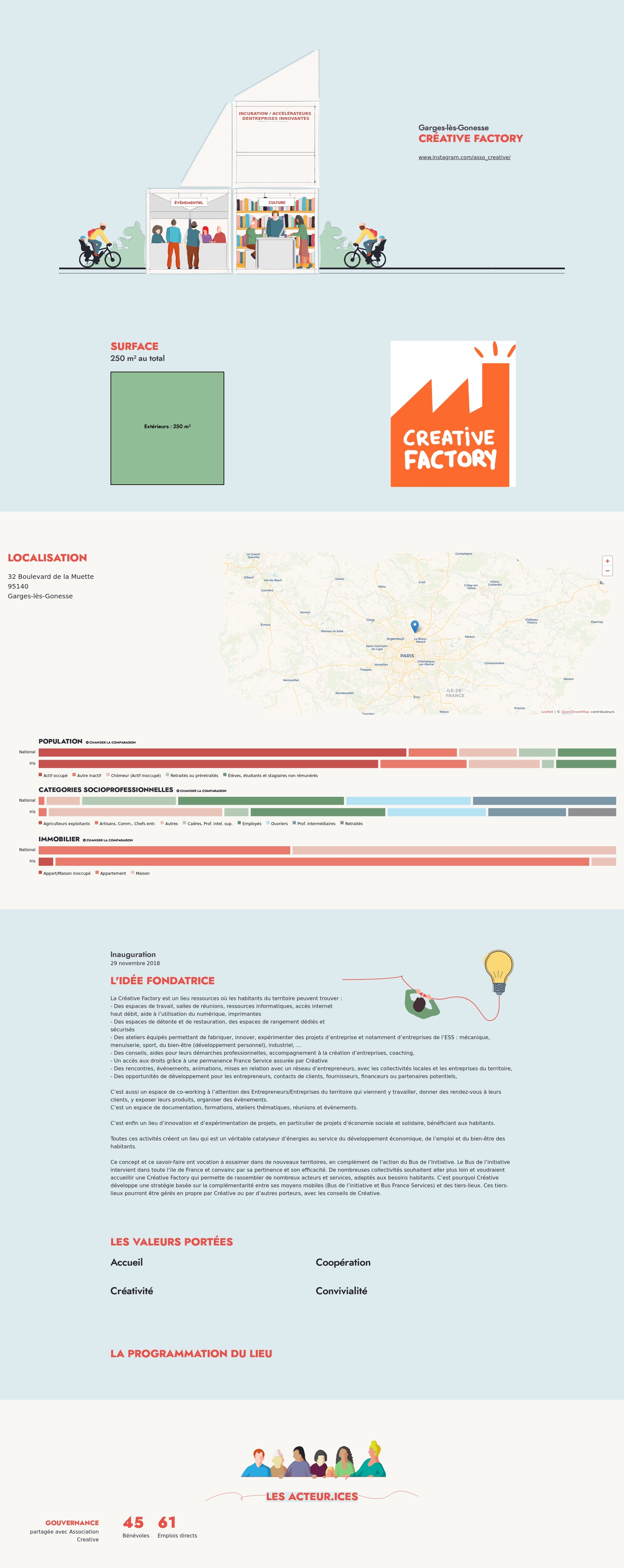 Ce concept et ce savoir-faire ont vocation à essaimer dans de nouveaux territoires, en complément de l’action du Bus de l’Initiative. Le Bus de l’initiative intervient dans toute l’ile de France et convainc par sa pertinence et son efficacité. De nombreuses collectivités souhaitent aller plus loin et voudraient accueillir une Créative Factory qui permette de rassembler de nombreux acteurs et services, adaptés aux besoins habitants. C’est pourquoi Créative développe une stratégie basée sur la complémentarité entre ses moyens mobiles (Bus de l’initiative et Bus France Services) et des tiers-lieux. Ces tiers-lieux pourront être gérés en propre par Créative ou par d’autres porteurs, avec les conseils de Créative.