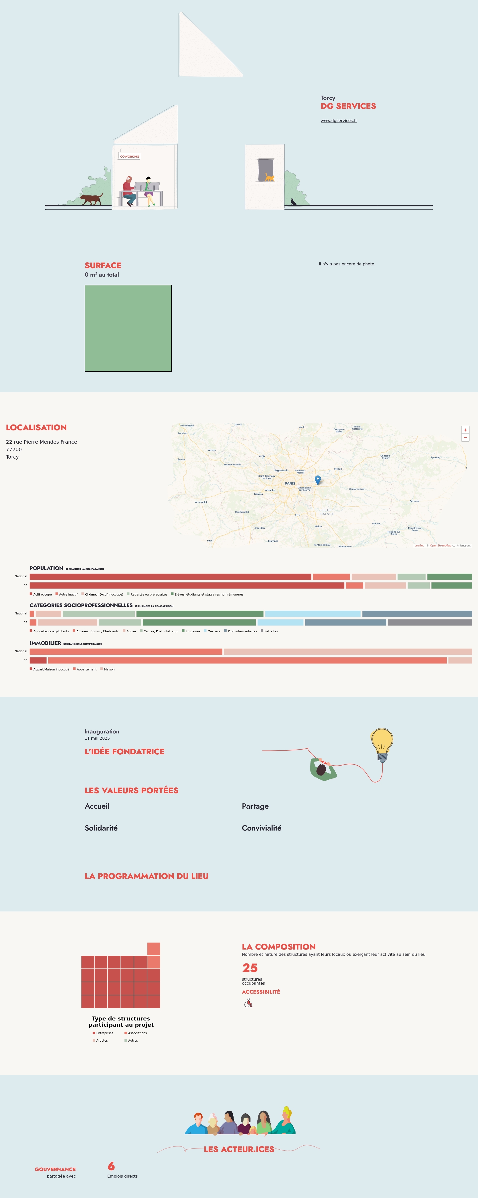 Nombre et nature des structures ayant leurs locaux ou exerçant leur activité au sein du lieu.