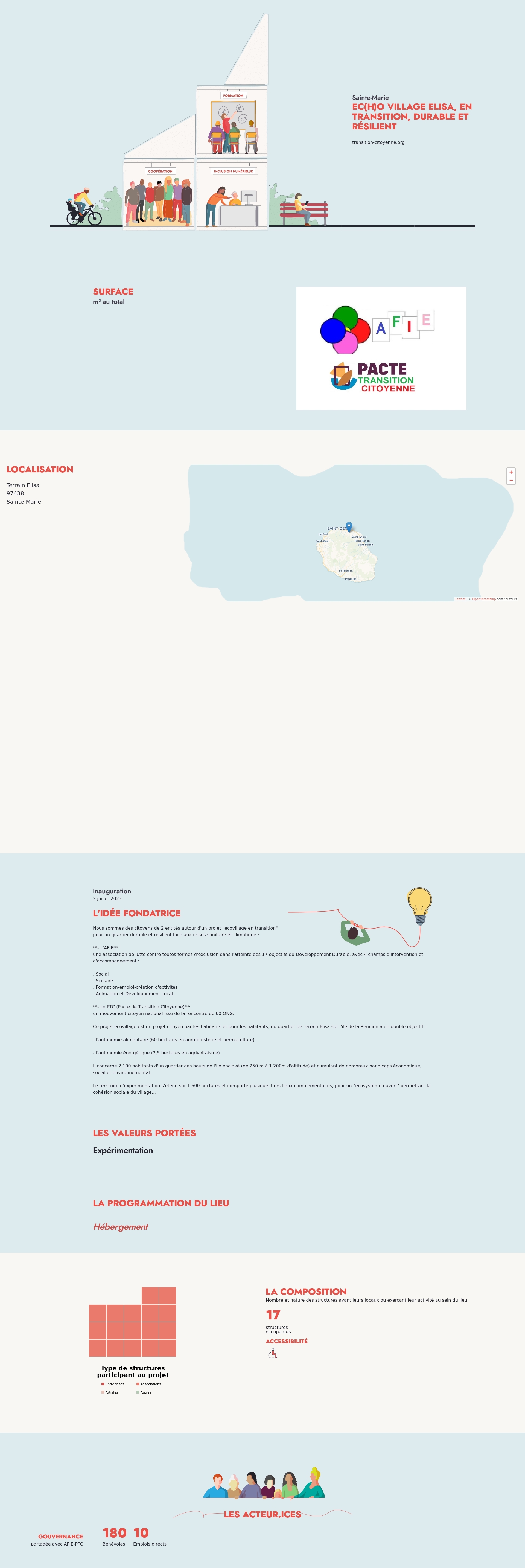 Ce projet écovillage est un projet citoyen par les habitants et pour les habitants, du quartier de Terrain Elisa sur l'île de la Réunion a un double objectif :