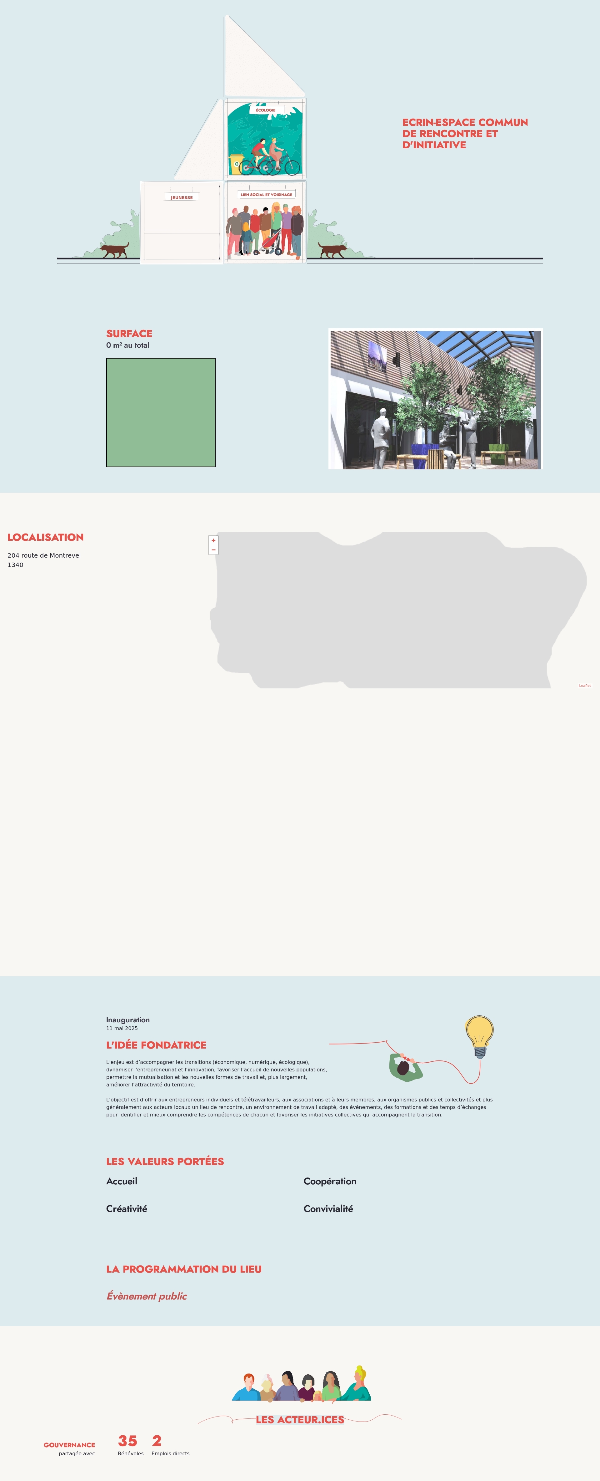 L’objectif est d’offrir aux entrepreneurs individuels et télétravailleurs, aux associations et à leurs membres, aux organismes publics et collectivités et plus généralement aux acteurs locaux un lieu de rencontre, un environnement de travail adapté, des événements, des formations et des temps d’échanges pour identifier et mieux comprendre les compétences de chacun et favoriser les initiatives collectives qui accompagnent la transition.