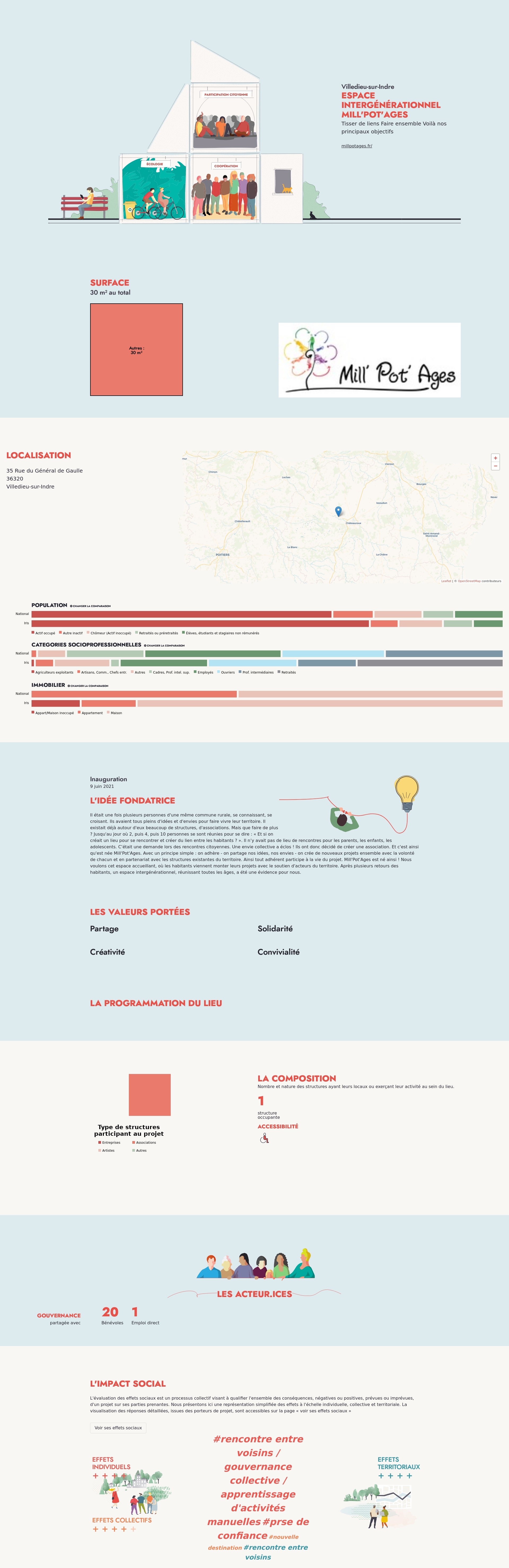 Il était une fois plusieurs personnes d'une même commune rurale, se connaissant, se croisant. Ils avaient tous pleins d'idées et d'envies pour faire vivre leur territoire. Il existait déjà autour d'eux beaucoup de structures, d'associations. Mais que faire de plus ? Jusqu'au jour où 2, puis 4, puis 10 personnes se sont réunies pour se dire : « Et si on créait un lieu pour se rencontrer et créer du lien entre les habitants ? ». Il n’y avait pas de lieu de rencontres pour les parents, les enfants, les adolescents. C’était une demande lors des rencontres citoyennes. Une envie collective a éclos ! Ils ont donc décidé de créer une association. Et c'est ainsi qu'est née Mill'Pot'Ages. Avec un principe simple : on adhère - on partage nos idées, nos envies - on crée de nouveaux projets ensemble avec la volonté de chacun et en partenariat avec les structures existantes du territoire. Ainsi tout adhérent participe à la vie du projet. Mill'Pot'Ages est né ainsi ! Nous voulons cet espace accueillant, où les habitants viennent monter leurs projets avec le soutien d'acteurs du territoire. Après plusieurs retours des habitants, un espace intergénérationnel, réunissant toutes les âges, a été une évidence pour nous.