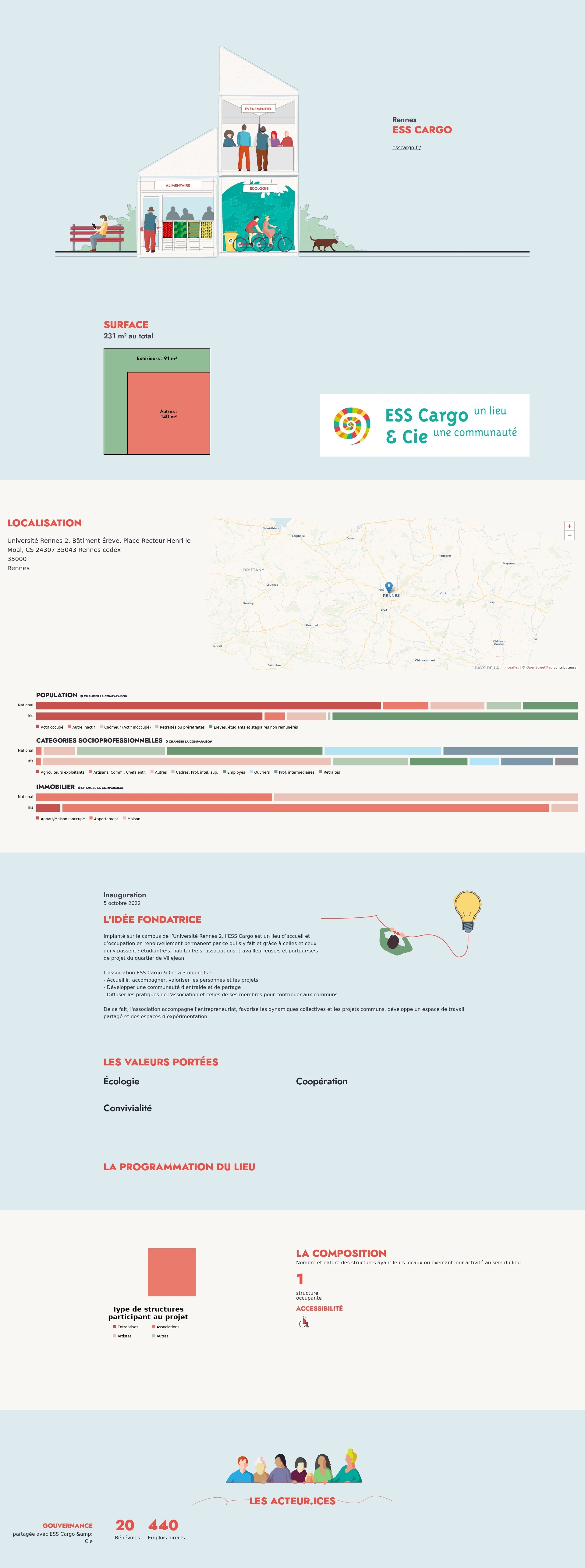 Implanté sur le campus de l’Université Rennes 2, l’ESS Cargo est un lieu d’accueil et d’occupation en renouvellement permanent par ce qui s’y fait et grâce à celles et ceux qui y passent : étudiant·e·s, habitant·e·s, associations, travailleur·euse·s et porteur·se·s de projet du quartier de Villejean.