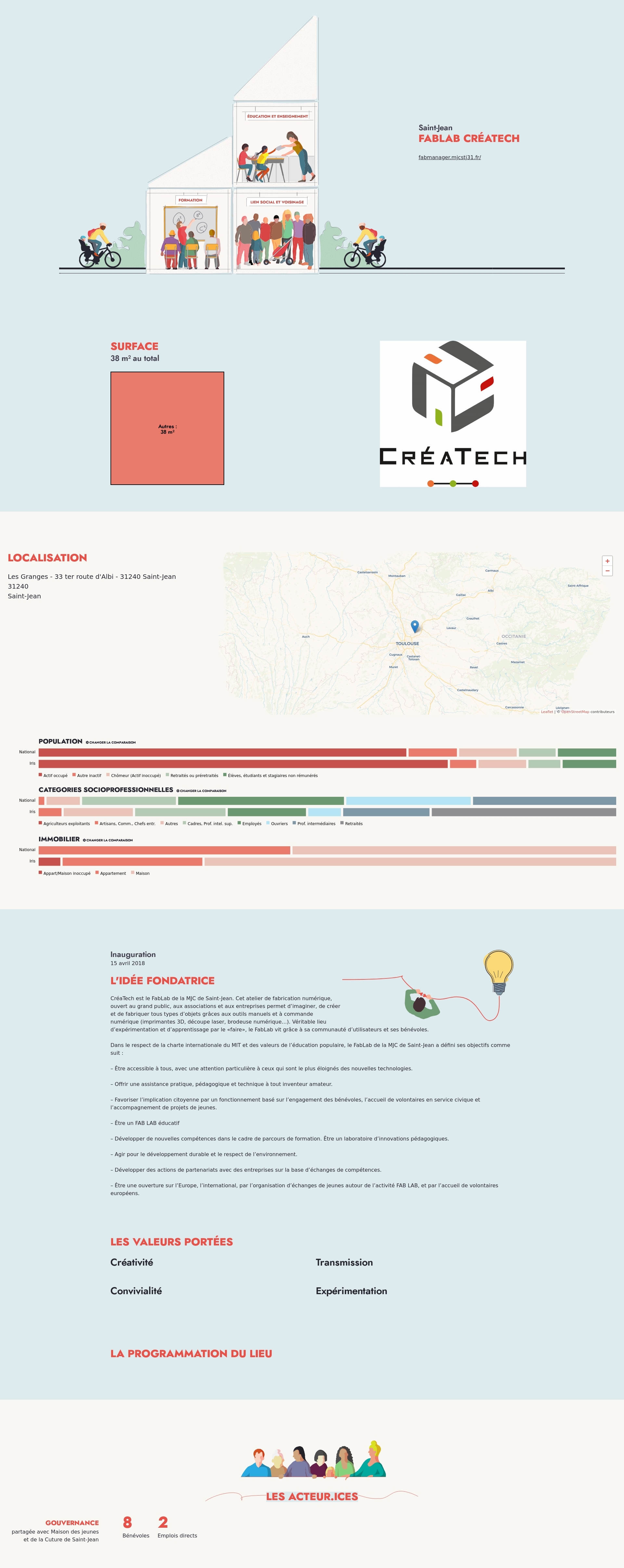 CréaTech est le FabLab de la MJC de Saint-Jean. Cet atelier de fabrication numérique, ouvert au grand public, aux associations et aux entreprises permet d’imaginer, de créer et de fabriquer tous types d’objets grâces aux outils manuels et à commande numérique (imprimantes 3D, découpe laser, brodeuse numérique…). Véritable lieu d’expérimentation et d’apprentissage par le «faire», le FabLab vit grâce à sa communauté d’utilisateurs et ses bénévoles.