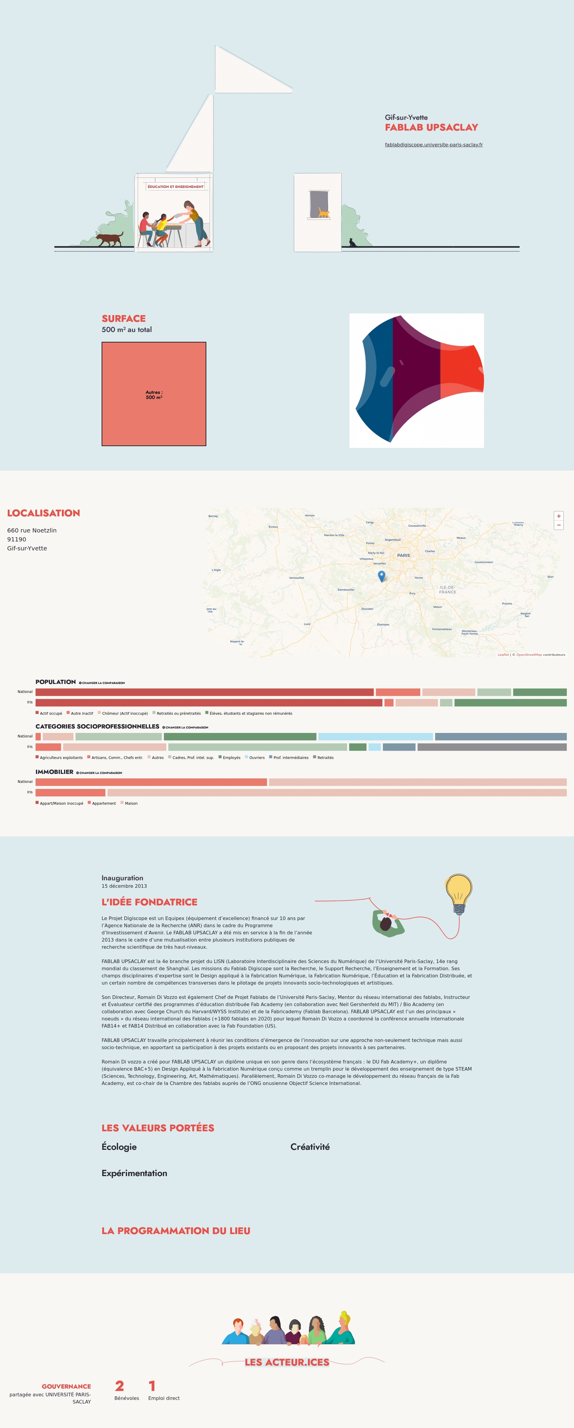 FABLAB UPSACLAY est la 4e branche projet du LISN (Laboratoire Interdisciplinaire des Sciences du Numérique) de l’Université Paris-Saclay, 14e rang mondial du classement de Shanghaï. Les missions du Fablab Digiscope sont la Recherche, le Support Recherche, l’Enseignement et la Formation. Ses champs disciplinaires d’expertise sont le Design appliqué à la Fabrication Numérique, la Fabrication Numérique, l’Éducation et la Fabrication Distribuée, et un certain nombre de compétences transverses dans le pilotage de projets innovants socio-technologiques et artistiques.