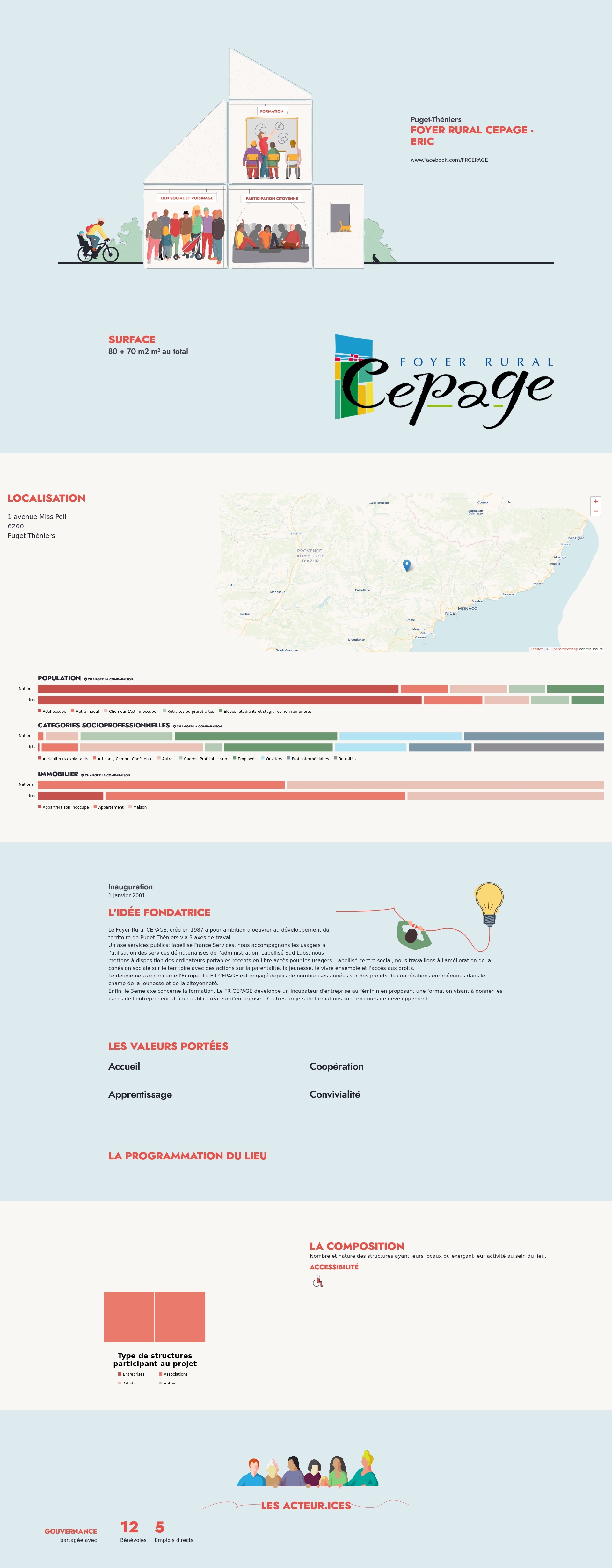 Le Foyer Rural CEPAGE, crée en 1987 a pour ambition d'oeuvrer au développement du territoire de Puget Théniers via 3 axes de travail.