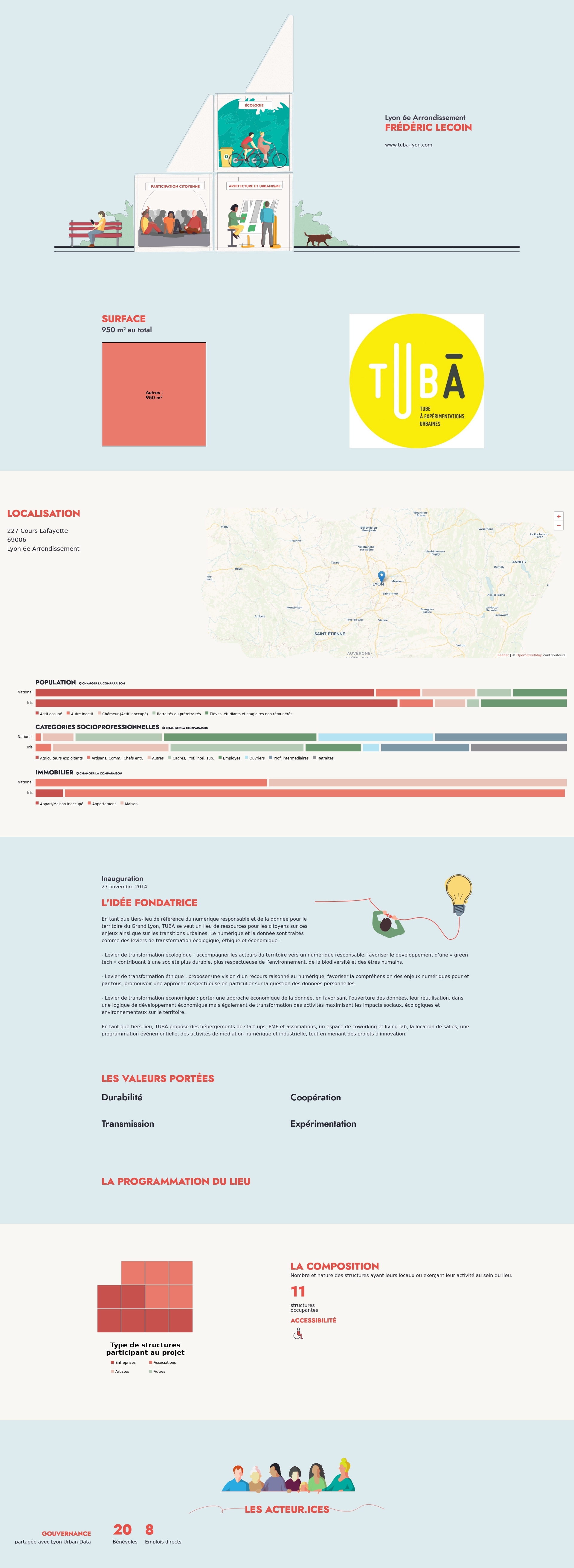 En tant que tiers-lieu de référence du numérique responsable et de la donnée pour le territoire du Grand Lyon, TUBÀ se veut un lieu de ressources pour les citoyens sur ces enjeux ainsi que sur les transitions urbaines. Le numérique et la donnée sont traités comme des leviers de transformation écologique, éthique et économique :