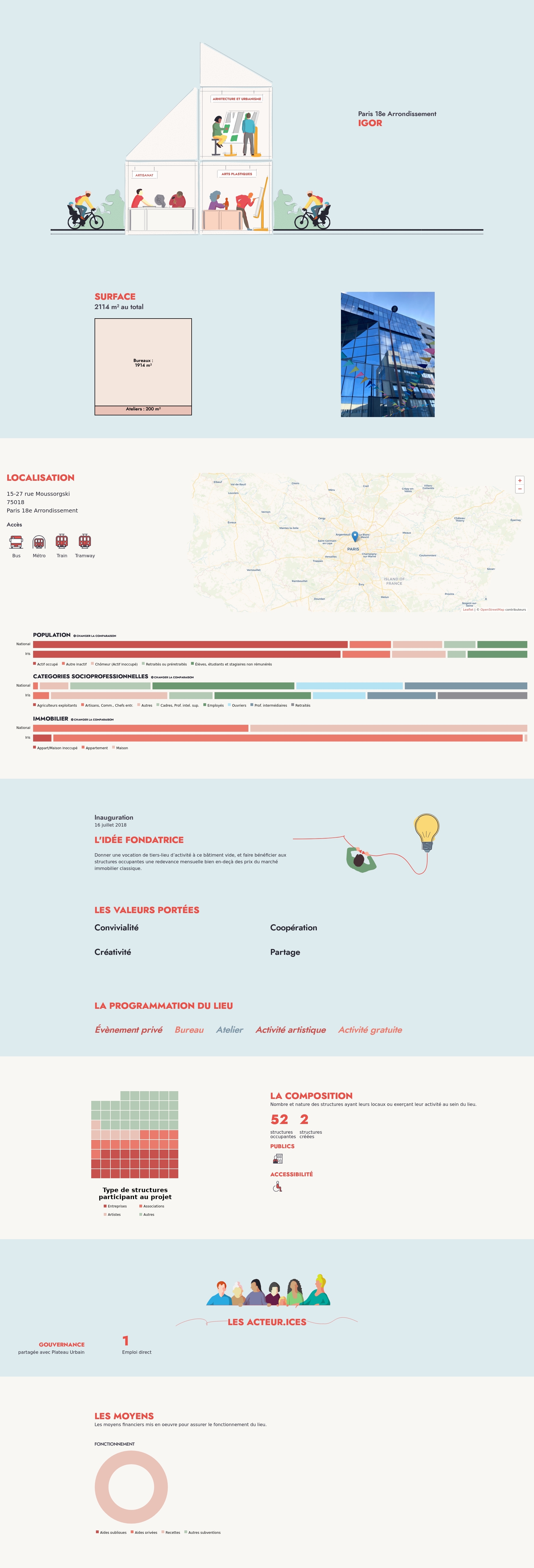 Nombre et nature des structures ayant leurs locaux ou exerçant leur activité au sein du lieu.