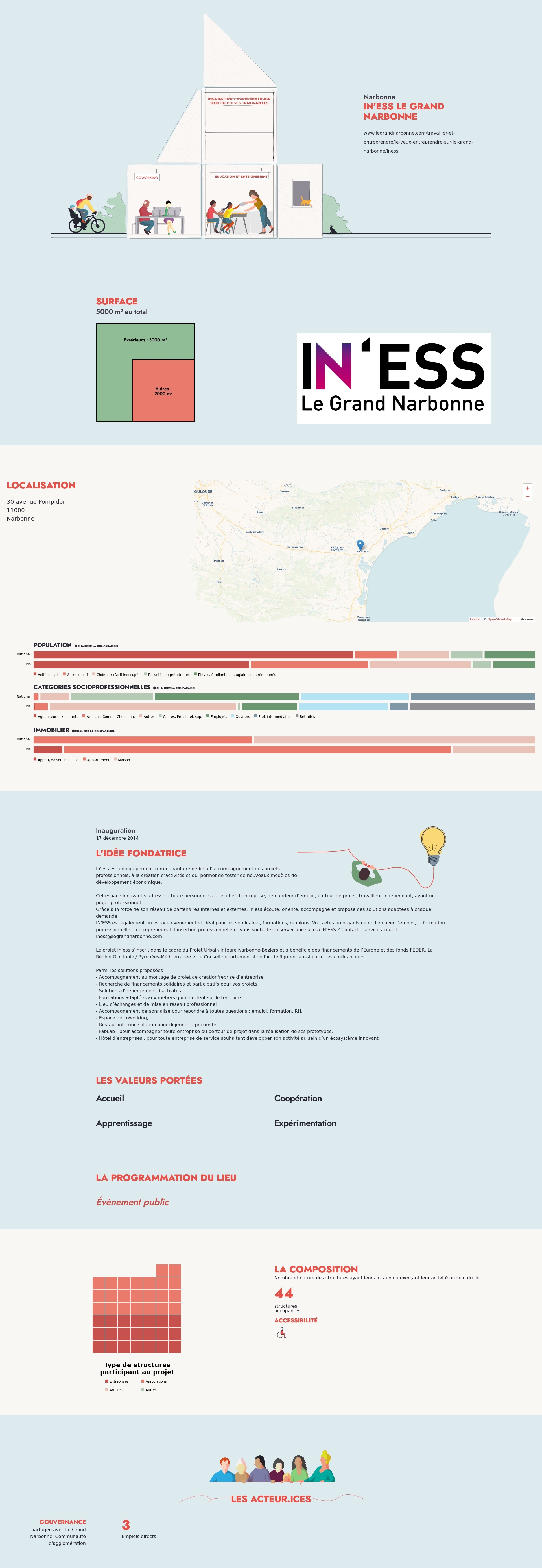 Le projet In'ess s’inscrit dans le cadre du Projet Urbain Intégré Narbonne-Béziers et a bénéficié des financements de l’Europe et des fonds FEDER. La Région Occitanie / Pyrénées-Méditerranée et le Conseil départemental de l’Aude figurent aussi parmi les co-financeurs.