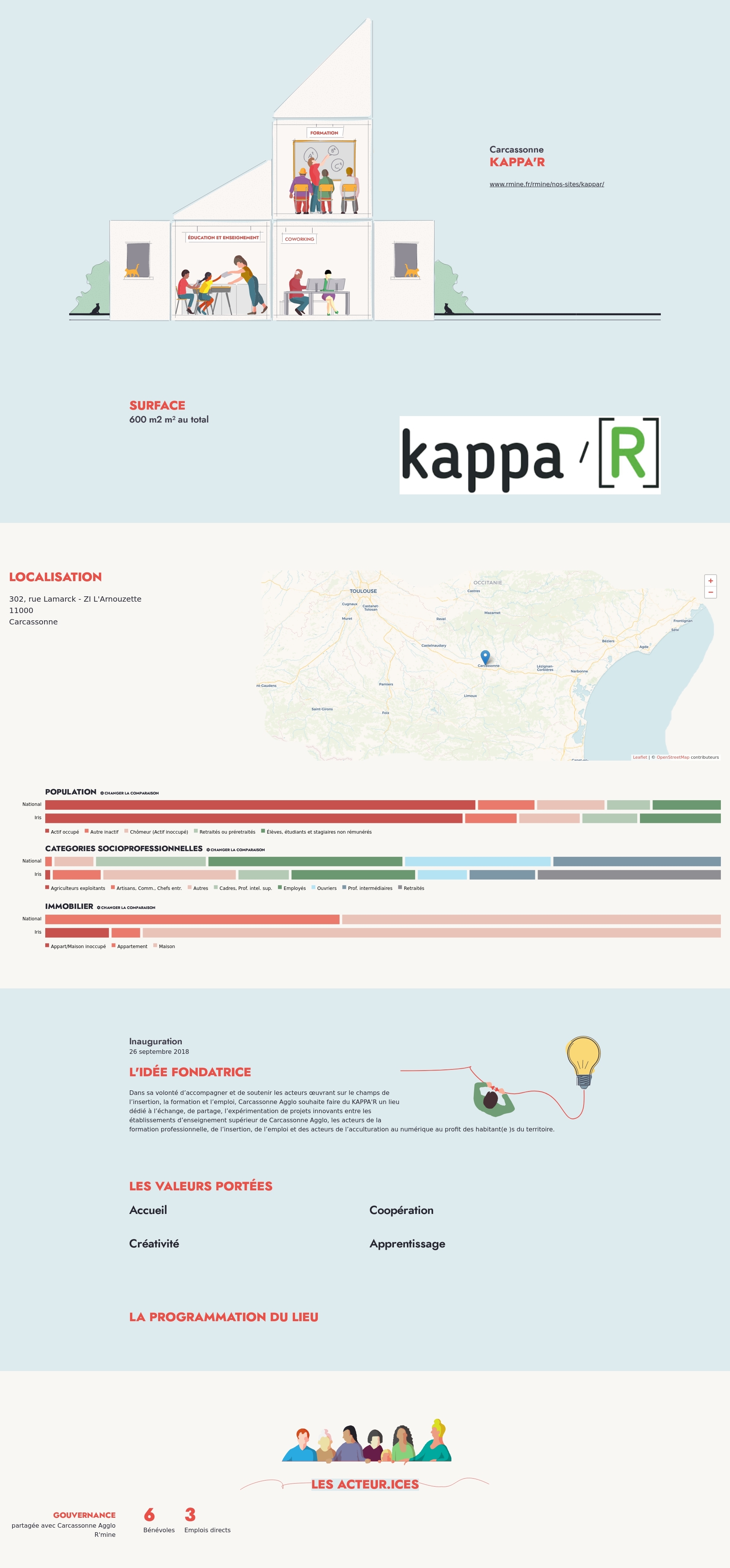Dans sa volonté d’accompagner et de soutenir les acteurs œuvrant sur le champs de l’insertion, la formation et l’emploi, Carcassonne Agglo souhaite faire du KAPPA'R un lieu dédié à l’échange, de partage, l’expérimentation de projets innovants entre les établissements d’enseignement supérieur de Carcassonne Agglo, les acteurs de la formation professionnelle, de l’insertion, de l’emploi et des acteurs de l’acculturation au numérique au profit des habitant(e )s du territoire.