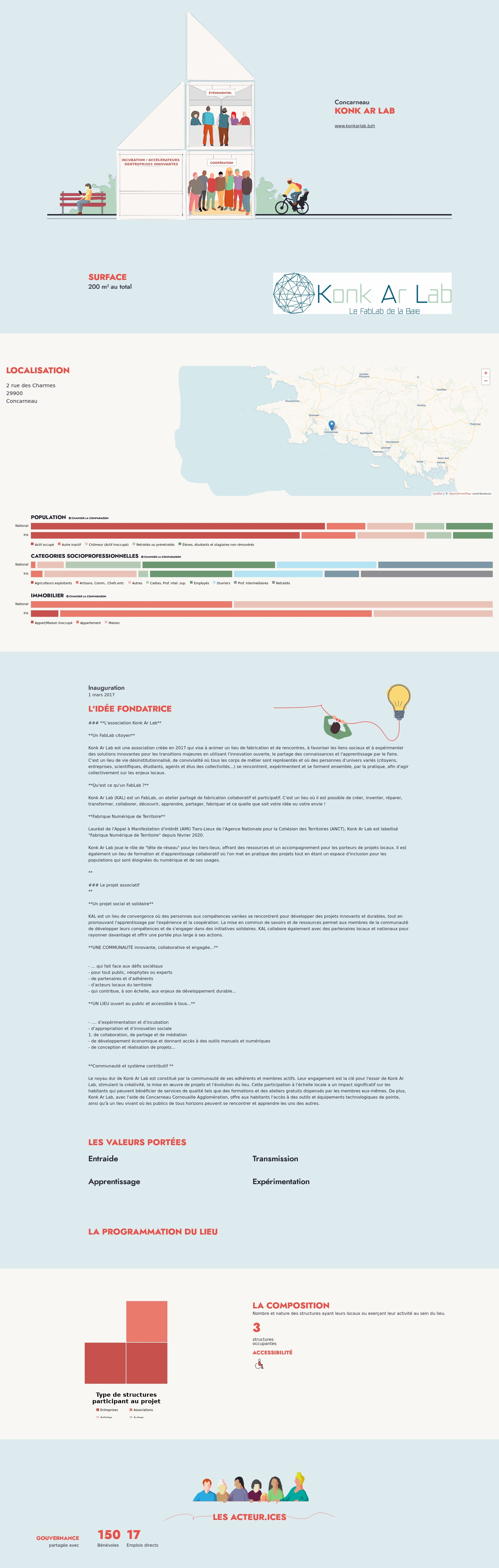 Konk Ar Lab est une association créée en 2017 qui vise à animer un lieu de fabrication et de rencontres, à favoriser les liens sociaux et à expérimenter des solutions innovantes pour les transitions majeures en utilisant l'innovation ouverte, le partage des connaissances et l'apprentissage par le Faire.
