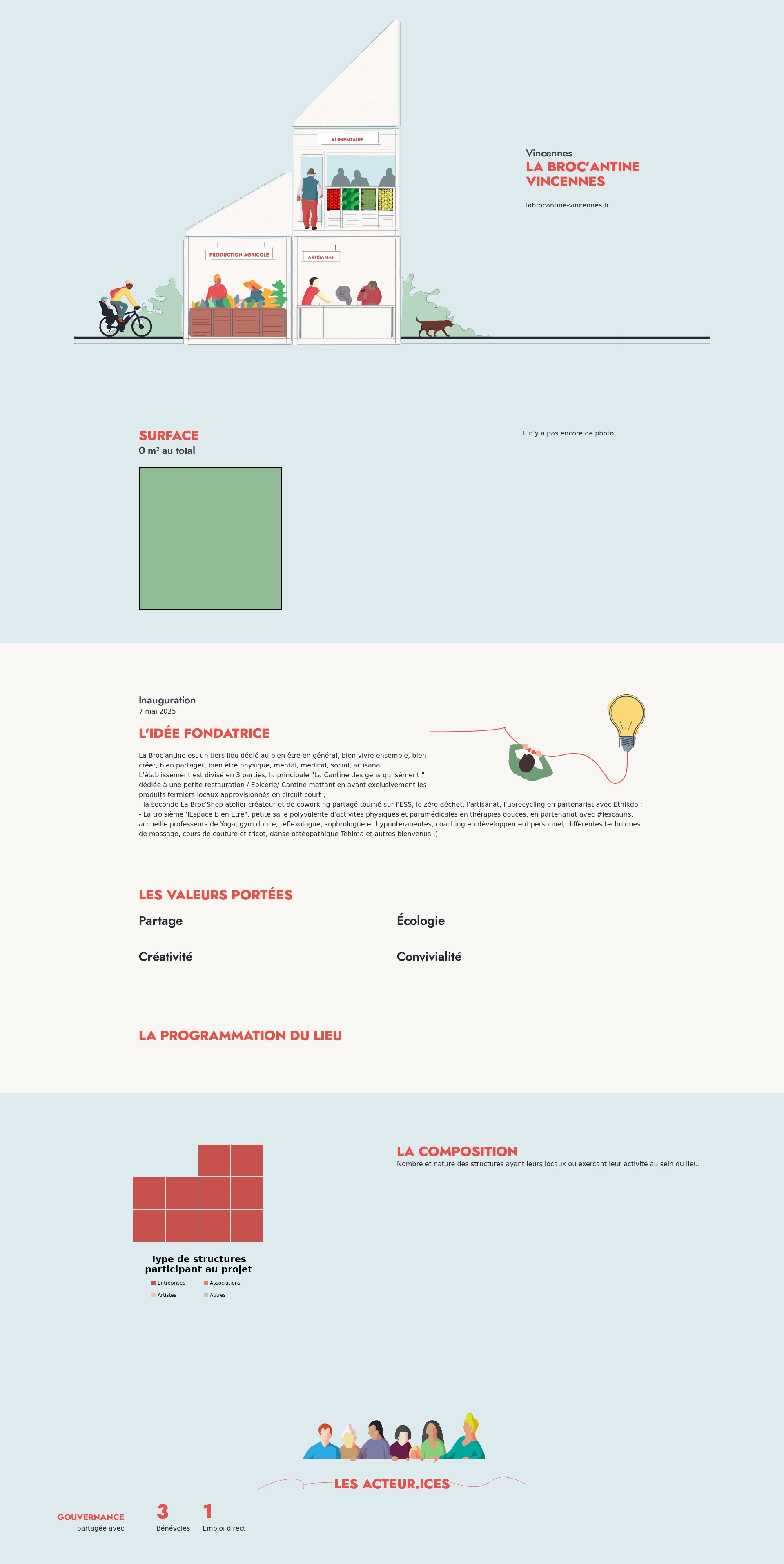 Nombre et nature des structures ayant leurs locaux ou exerçant leur activité au sein du lieu.