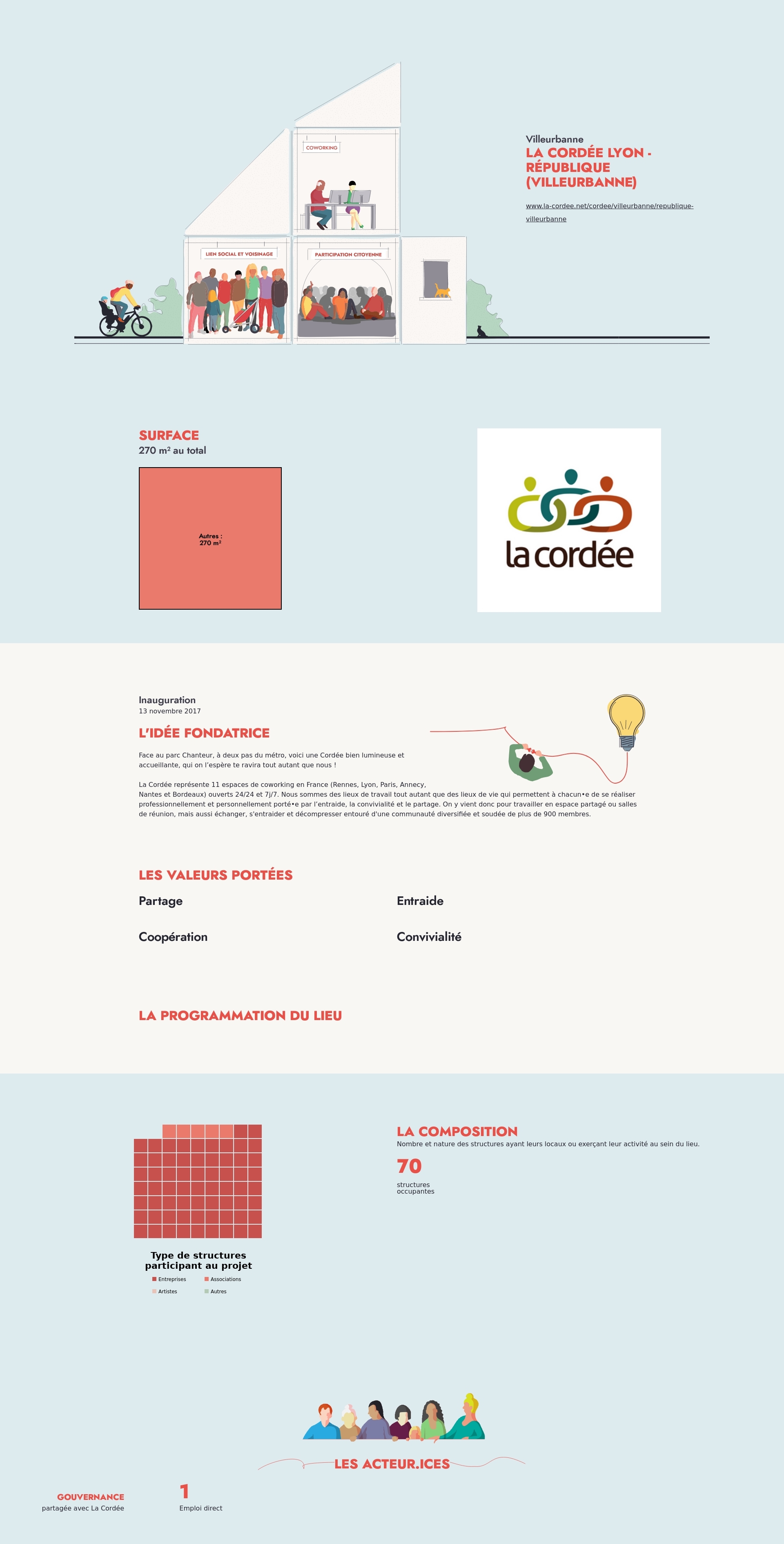 La Cordée représente 11 espaces de coworking en France (Rennes, Lyon, Paris, Annecy, Nantes et Bordeaux) ouverts 24/24 et 7j/7. Nous sommes des lieux de travail tout autant que des lieux de vie qui permettent à chacun•e de se réaliser professionnellement et personnellement porté•e par l’entraide, la convivialité et le partage. On y vient donc pour travailler en espace partagé ou salles de réunion, mais aussi échanger, s'entraider et décompresser entouré d'une communauté diversifiée et soudée de plus de 900 membres.