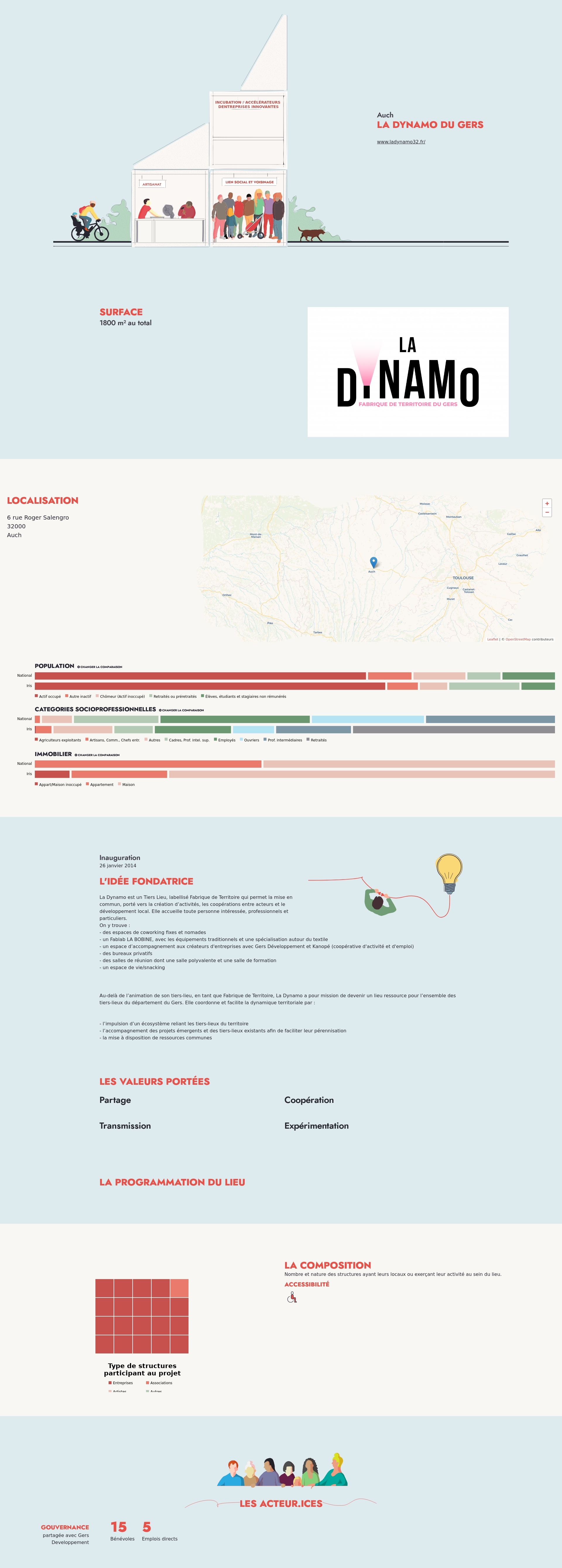 Au-delà de l’animation de son tiers-lieu, en tant que Fabrique de Territoire, La Dynamo a pour mission de devenir un lieu ressource pour l’ensemble des tiers-lieux du département du Gers. Elle coordonne et facilite la dynamique territoriale par :