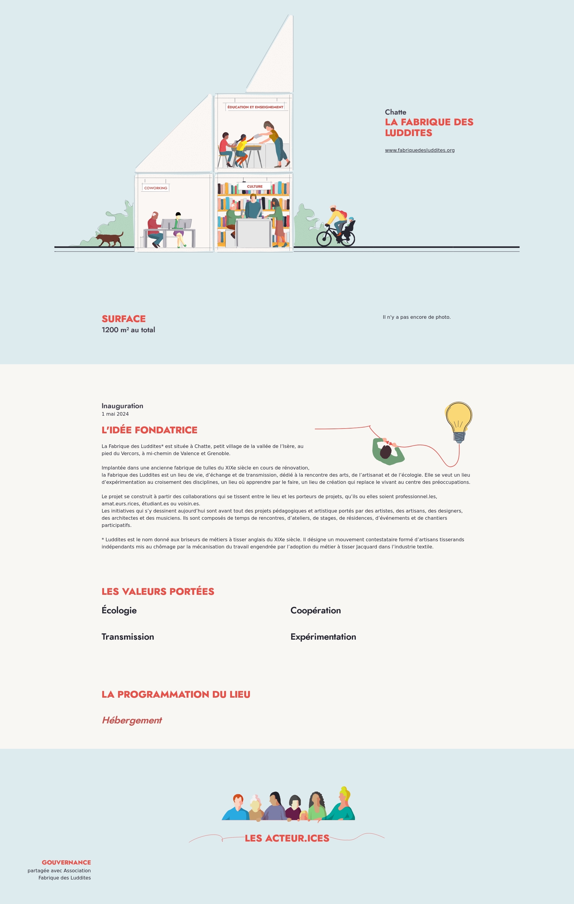La Fabrique des Luddites* est située à Chatte, petit village de la vallée de l’Isère, au pied du Vercors, à mi-chemin de Valence et Grenoble.
