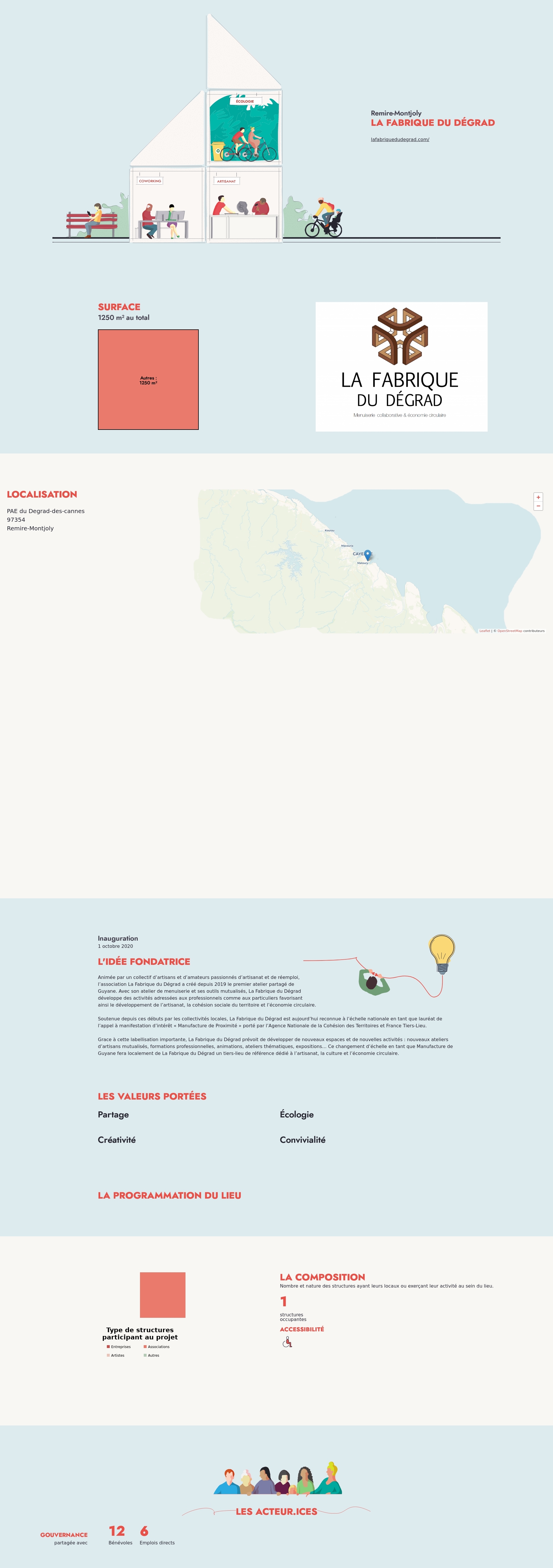 Soutenue depuis ces débuts par les collectivités locales, La Fabrique du Dégrad est aujourd’hui reconnue à l’échelle nationale en tant que lauréat de l’appel à manifestation d’intérêt « Manufacture de Proximité » porté par l’Agence Nationale de la Cohésion des Territoires et France Tiers-Lieu.