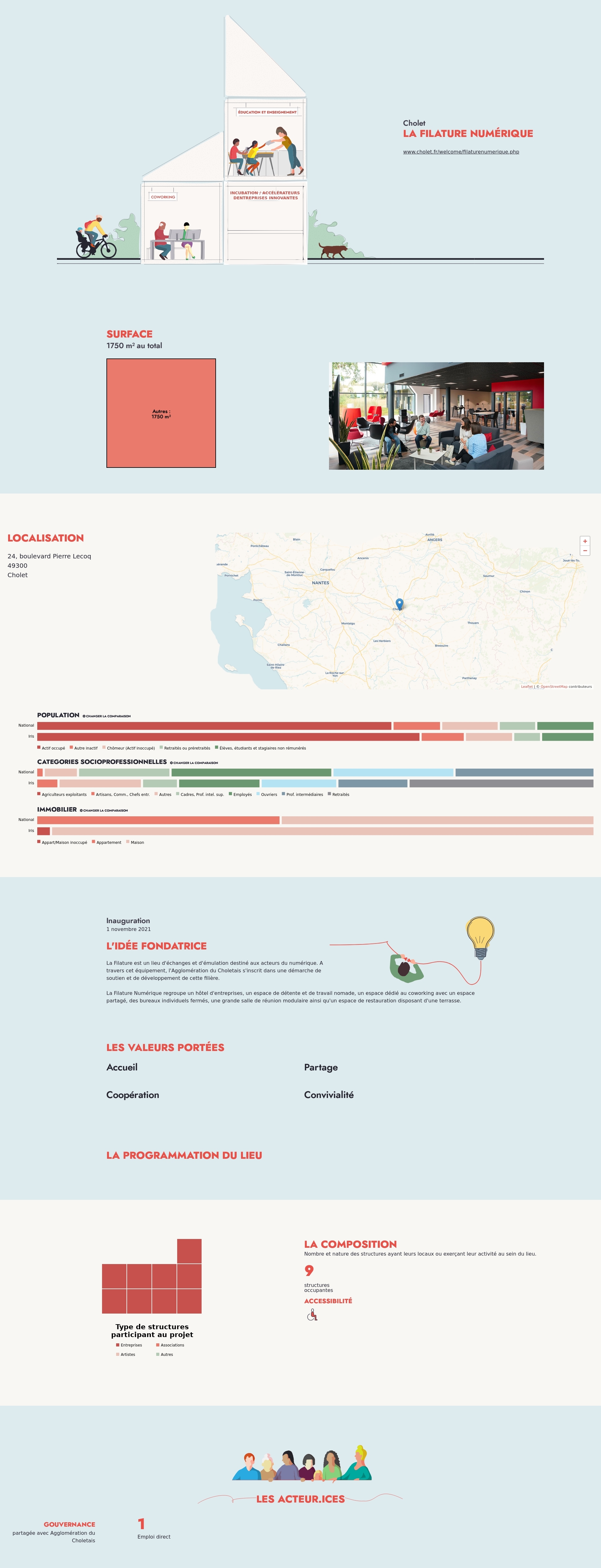 La Filature est un lieu d'échanges et d'émulation destiné aux acteurs du numérique. A travers cet équipement, l'Agglomération du Choletais s'inscrit dans une démarche de soutien et de développement de cette filière.
