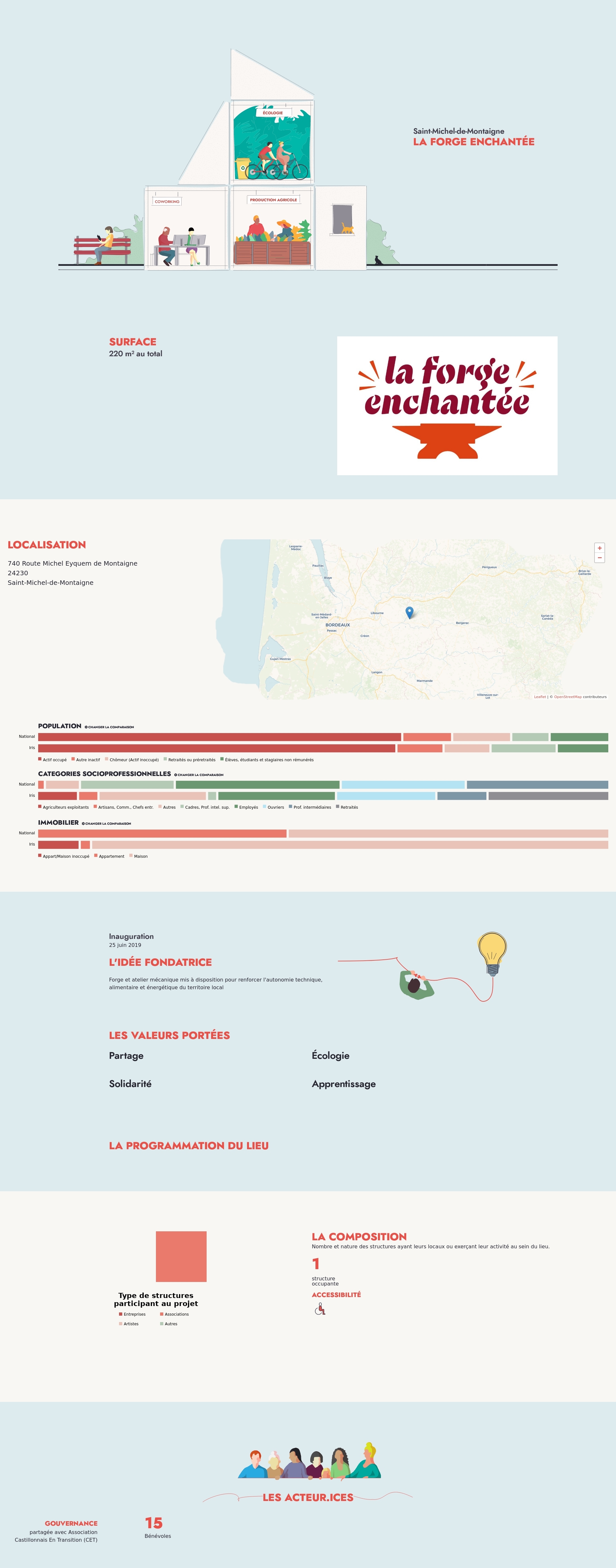 Nombre et nature des structures ayant leurs locaux ou exerçant leur activité au sein du lieu.
