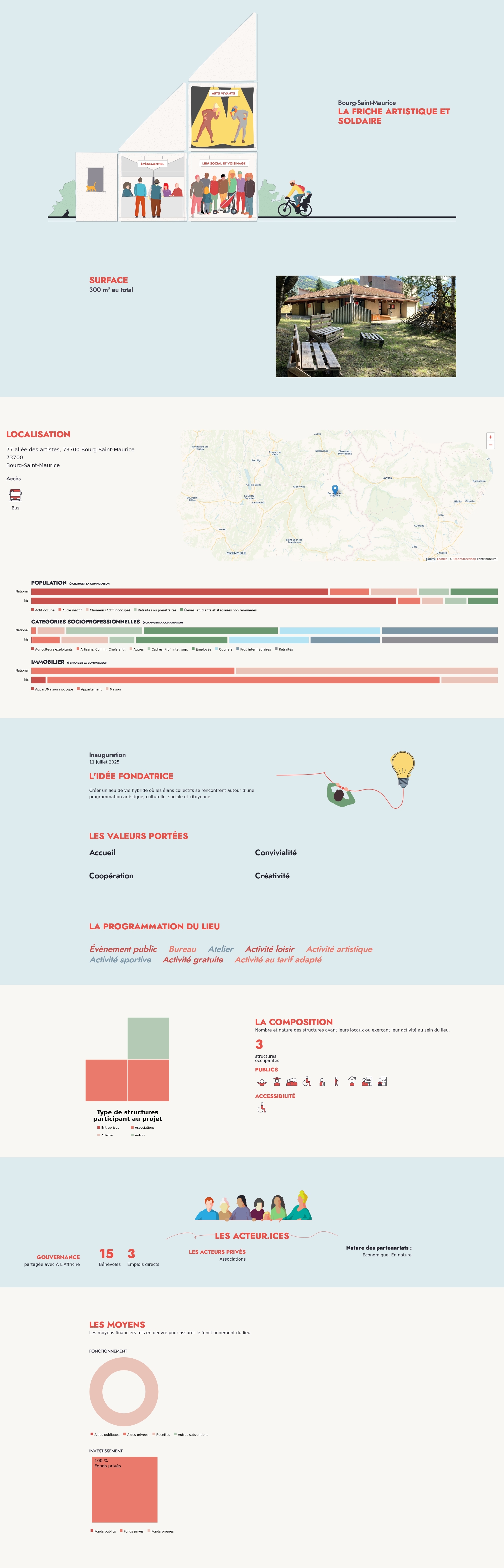 Nombre et nature des structures ayant leurs locaux ou exerçant leur activité au sein du lieu.