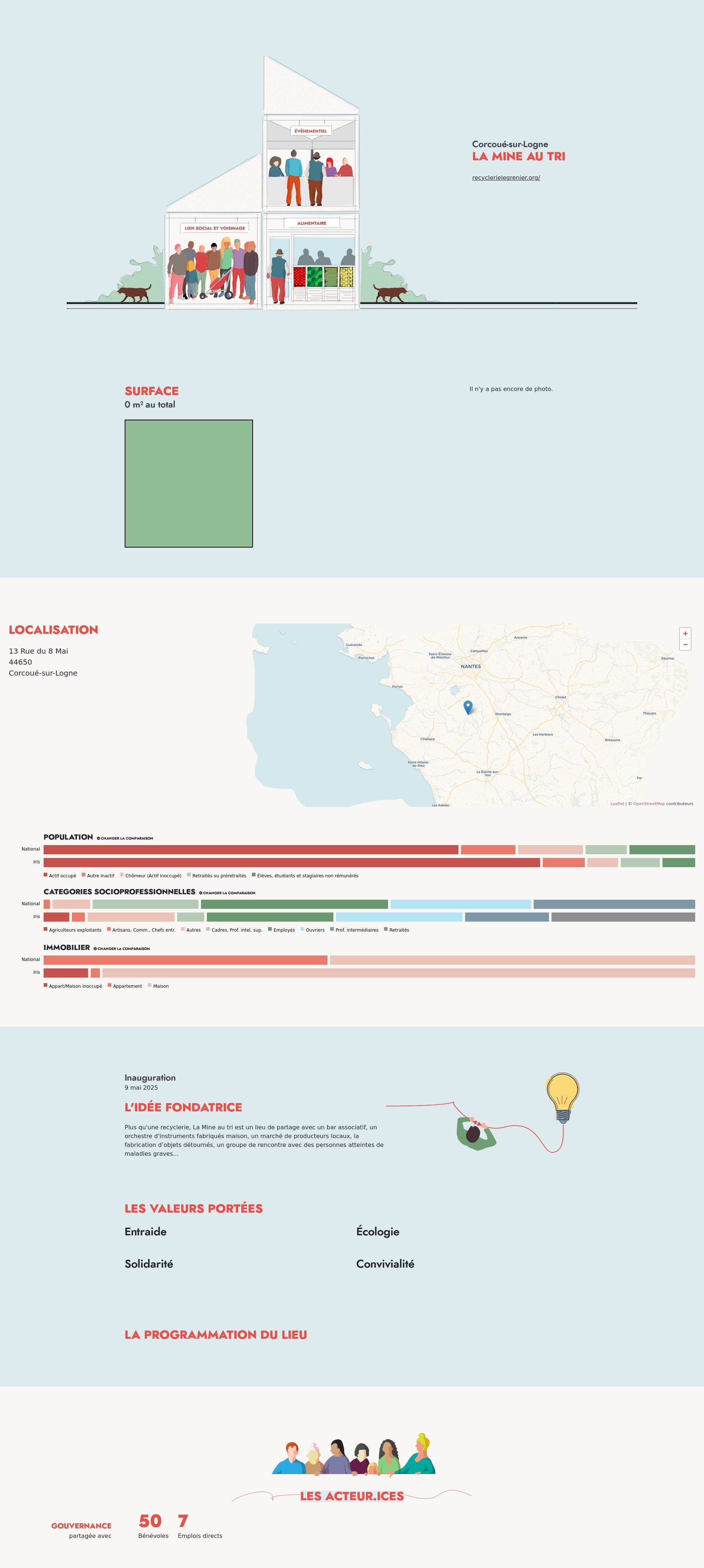 Plus qu'une recyclerie, La Mine au tri est un lieu de partage avec un bar associatif, un orchestre d'instruments fabriqués maison, un marché de producteurs locaux, la fabrication d’objets détournés, un groupe de rencontre avec des personnes atteintes de maladies graves...