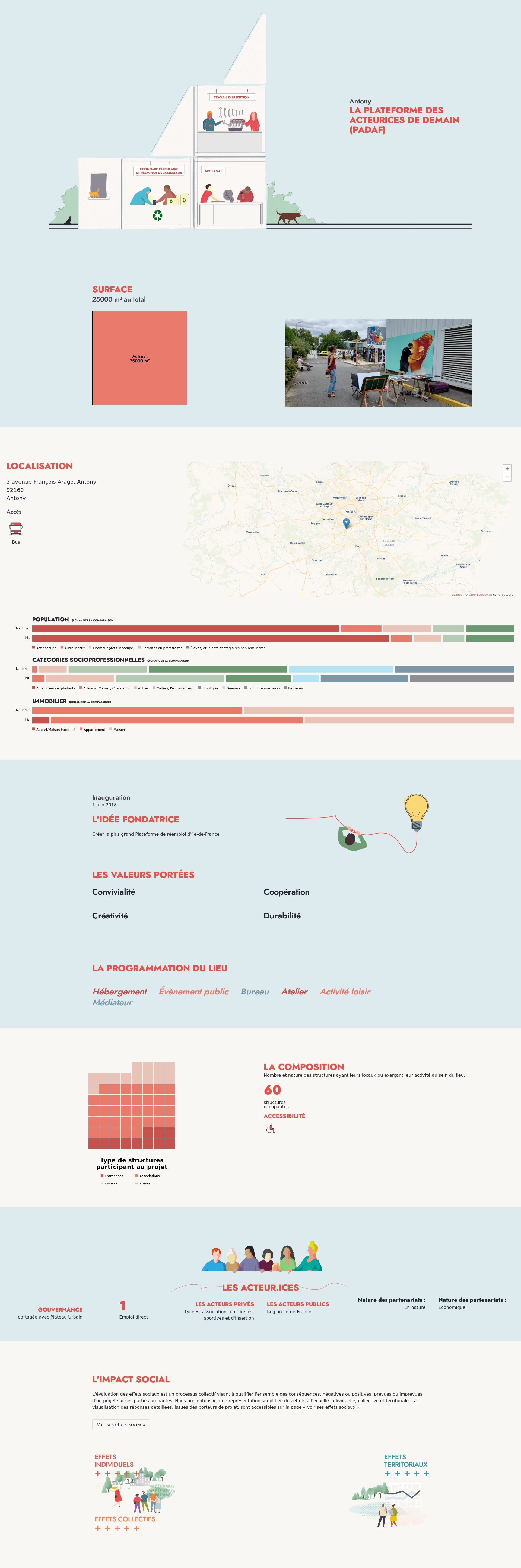 Nombre et nature des structures ayant leurs locaux ou exerçant leur activité au sein du lieu.