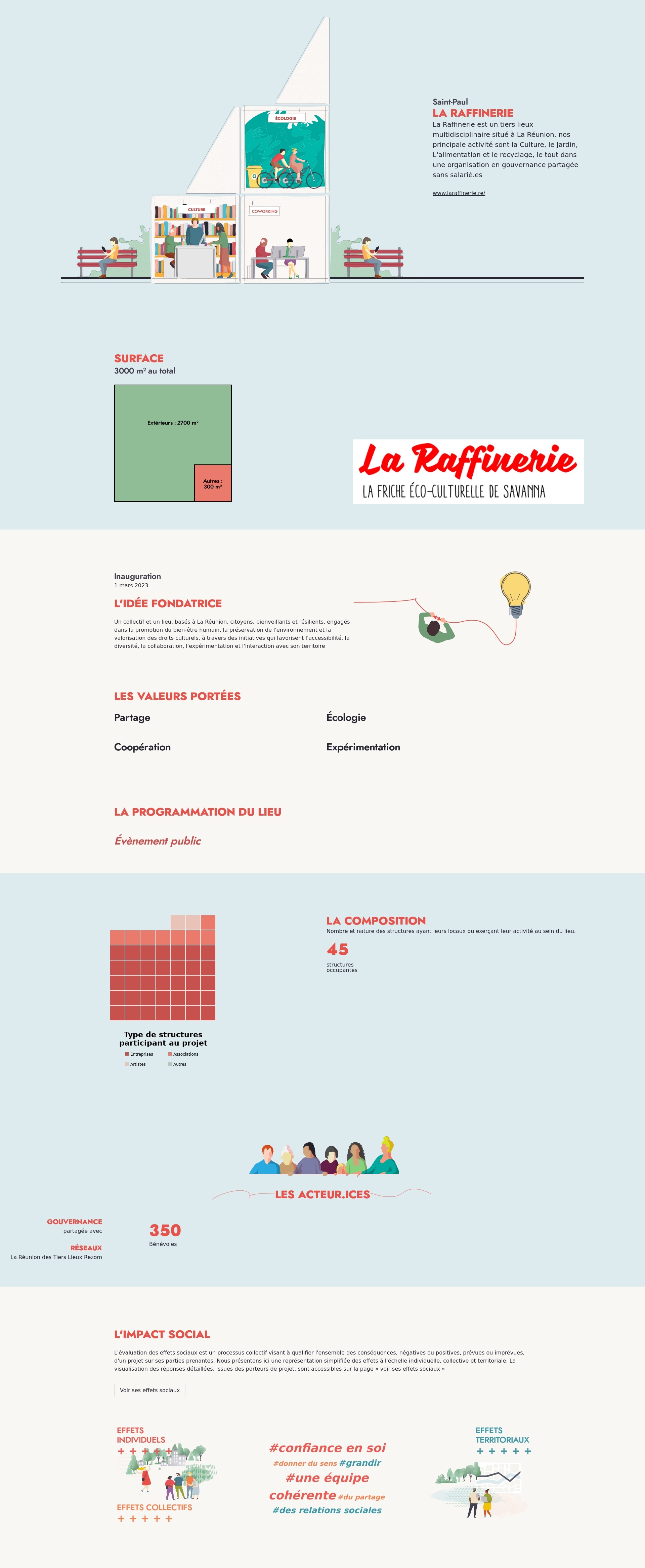 La Raffinerie est un tiers lieux multidisciplinaire situé à La Réunion, nos principales activités sont la Culture, le Jardin, L'alimentation et le recyclage, le tout dans une organisation en gouvernance partagée sans salarié.es