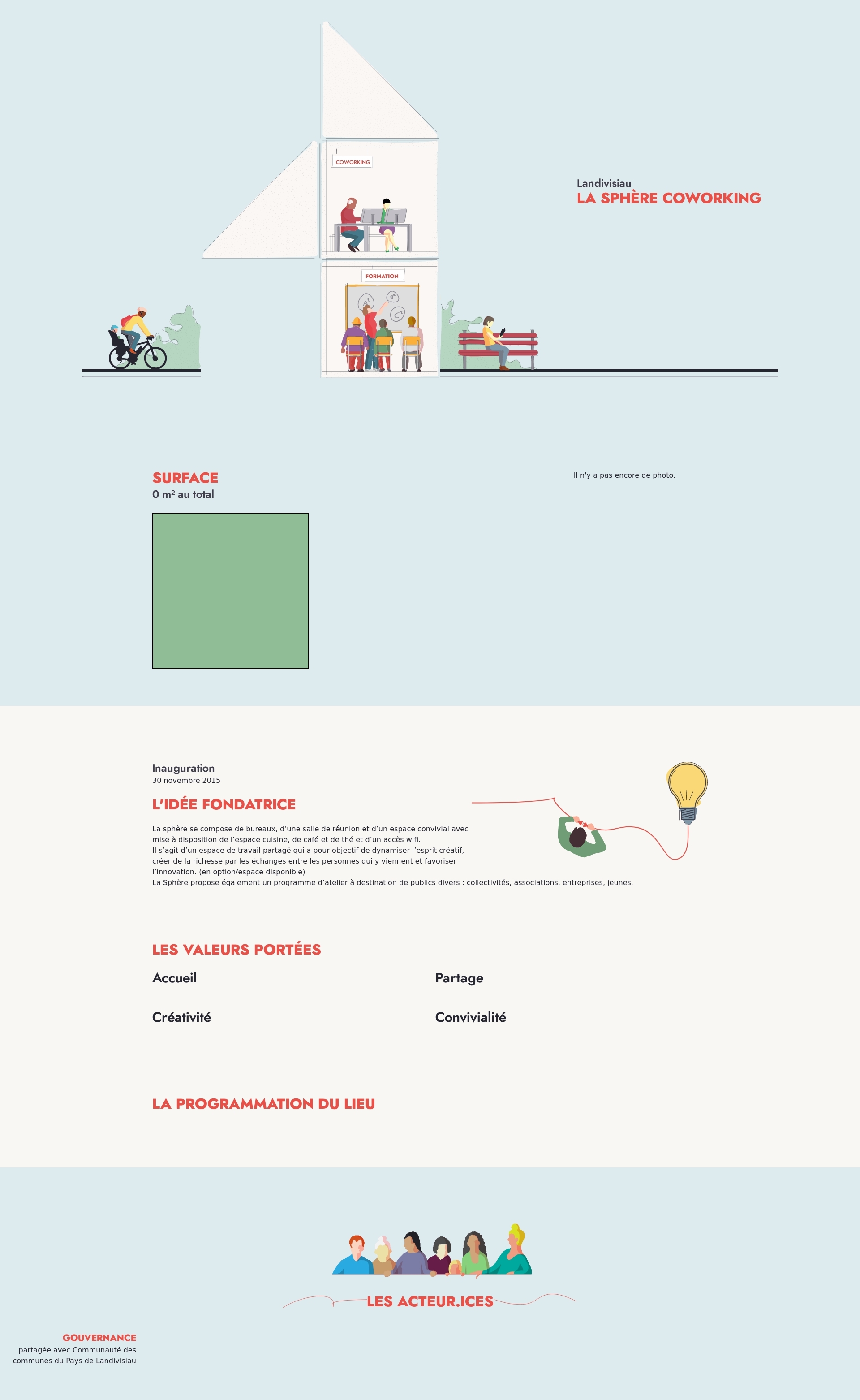 La sphère se compose de bureaux, d’une salle de réunion et d’un espace convivial avec mise à disposition de l’espace cuisine, de café et de thé et d’un accès wifi.