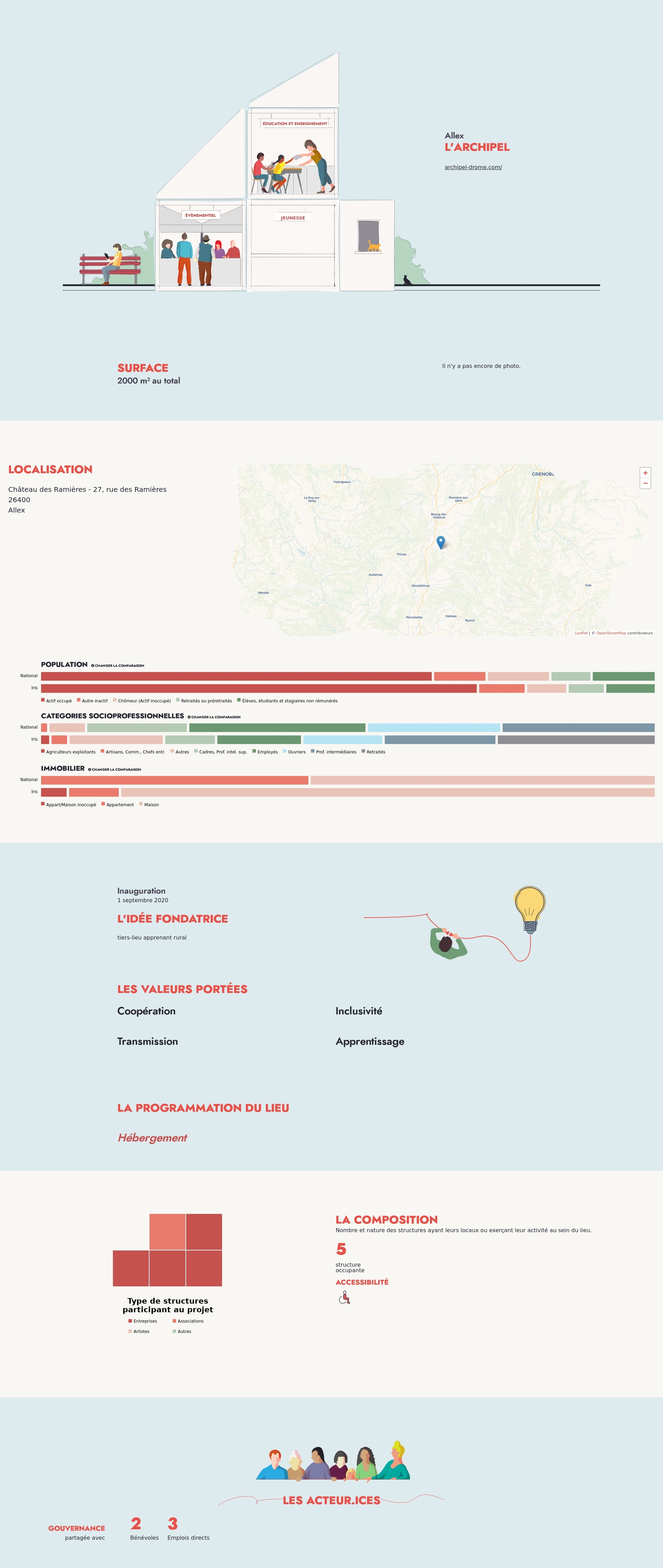 Nombre et nature des structures ayant leurs locaux ou exerçant leur activité au sein du lieu.