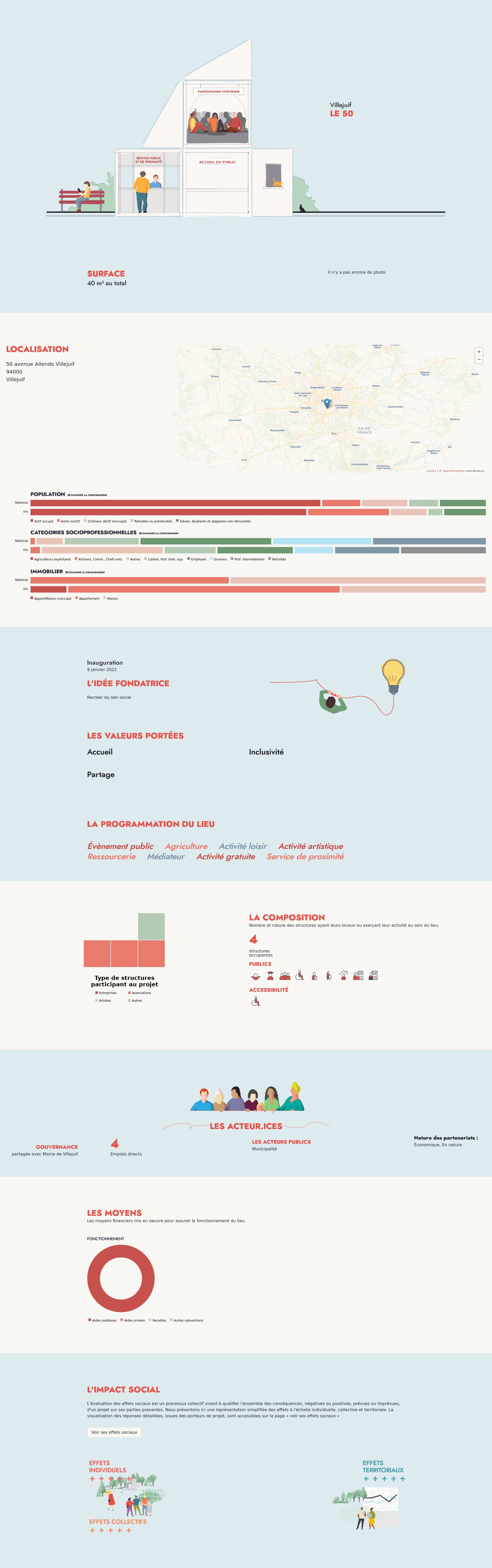 Nombre et nature des structures ayant leurs locaux ou exerçant leur activité au sein du lieu.