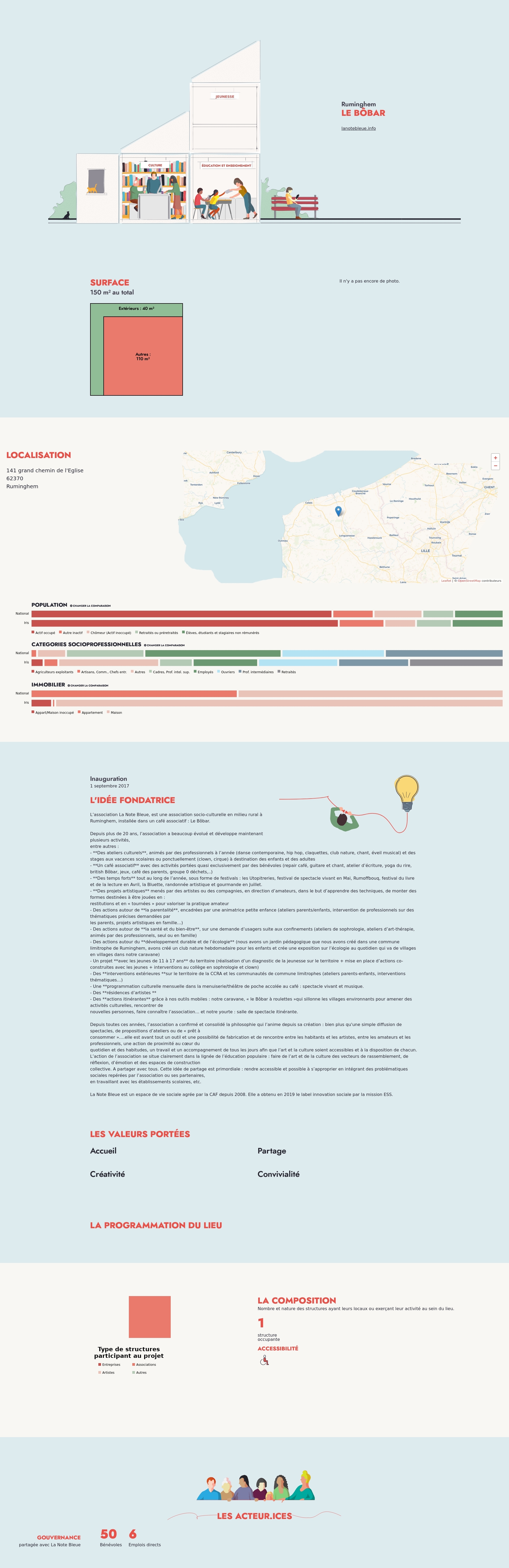 L’association La Note Bleue, est une association socio-culturelle en milieu rural à Ruminghem, installée dans un café associatif : Le Bôbar.