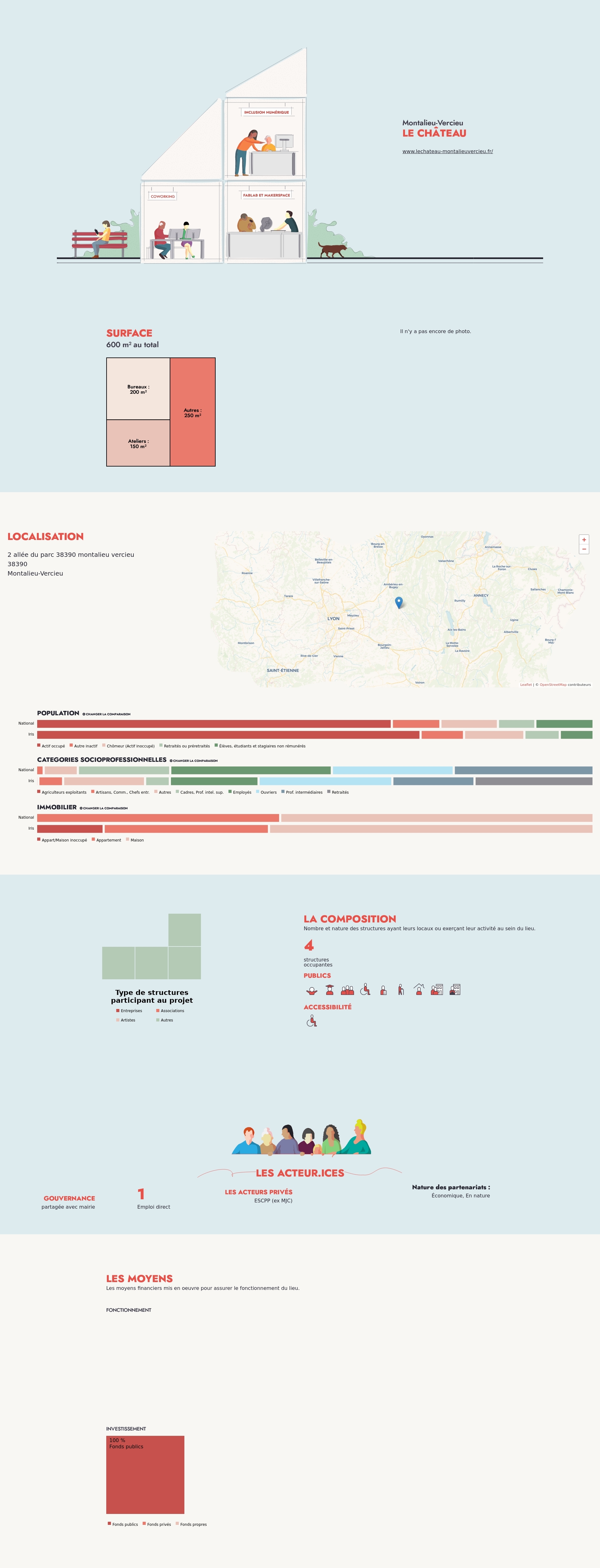 Nombre et nature des structures ayant leurs locaux ou exerçant leur activité au sein du lieu.