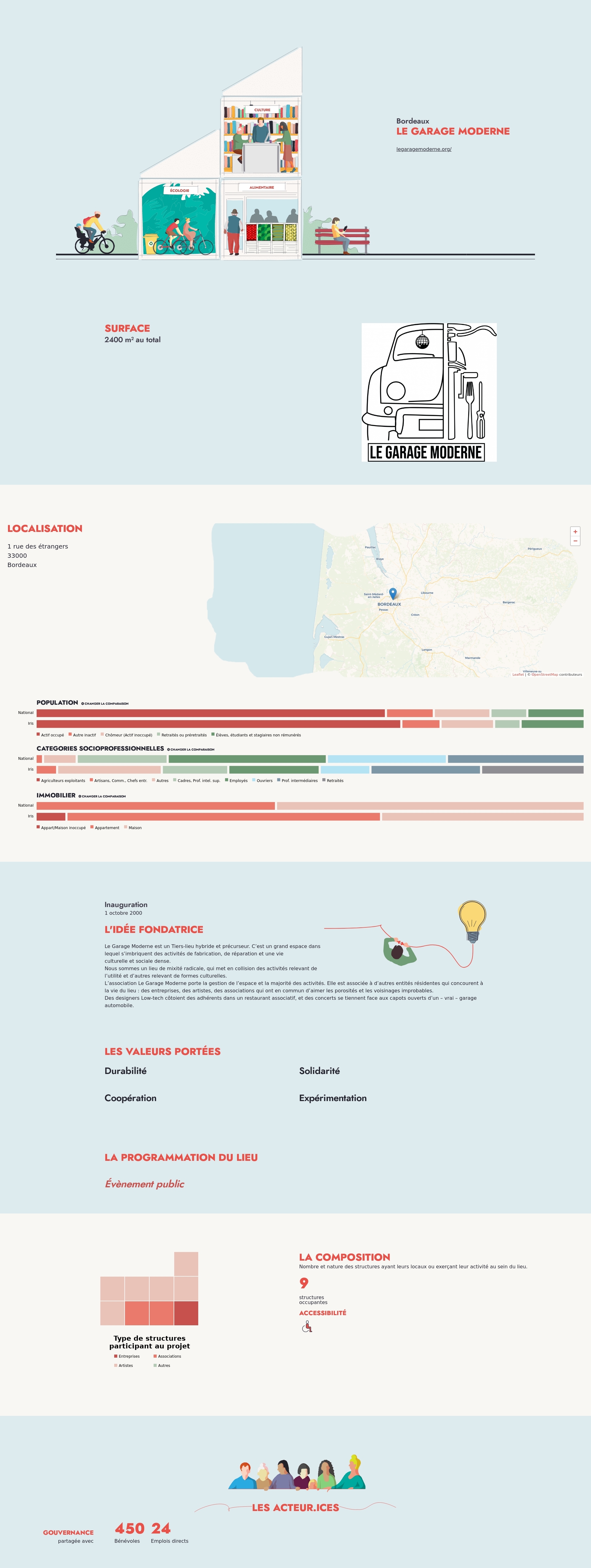 Le Garage Moderne est un Tiers-lieu hybride et précurseur. C’est un grand espace dans lequel s’imbriquent des activités de fabrication, de réparation et une vie