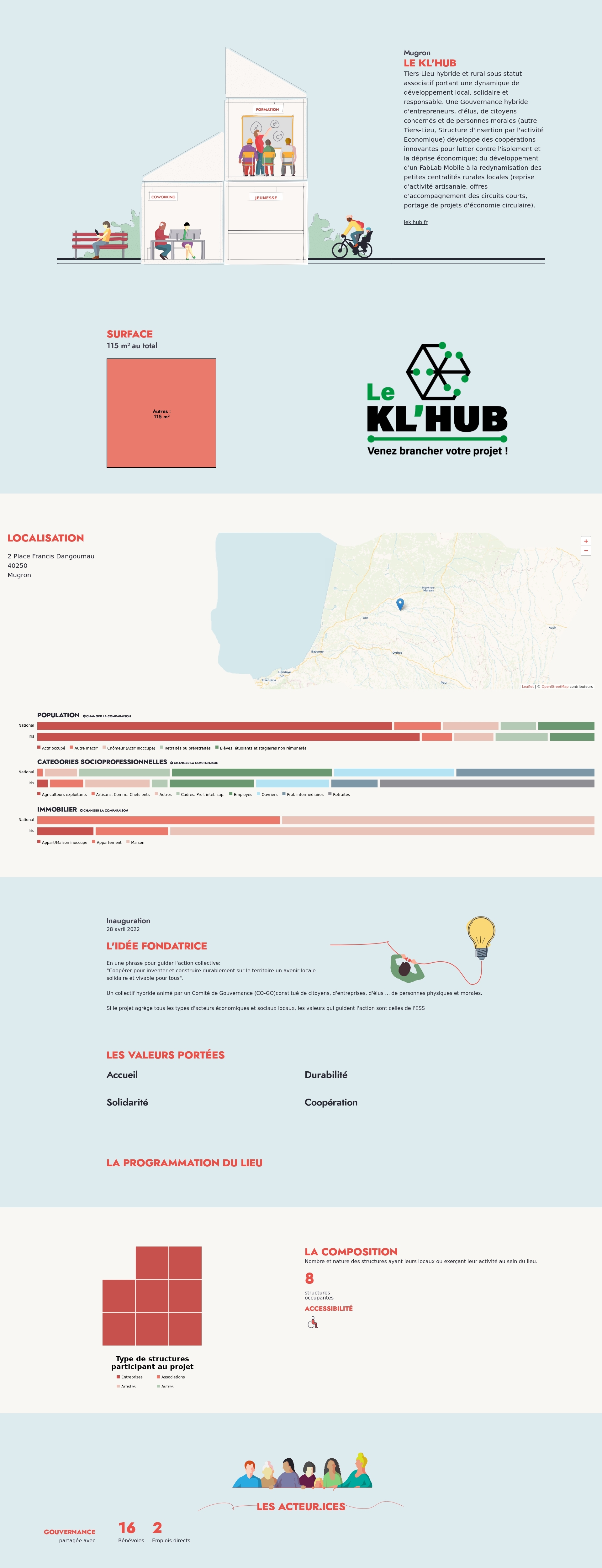 Tiers-Lieu hybride et rural sous statut associatif portant une dynamique de développement local, solidaire et responsable. Une Gouvernance hybride d'entrepreneurs, d'élus, de citoyens concernés et de personnes morales (autre Tiers-Lieu, Structure d'insertion par l'activité Economique) développe des coopérations innovantes pour lutter contre l'isolement et la déprise économique; du développement d'un FabLab Mobile à la redynamisation des petites centralités rurales locales (reprise d'activité artisanale, offres d'accompagnement des circuits courts, portage de projets d'économie circulaire).