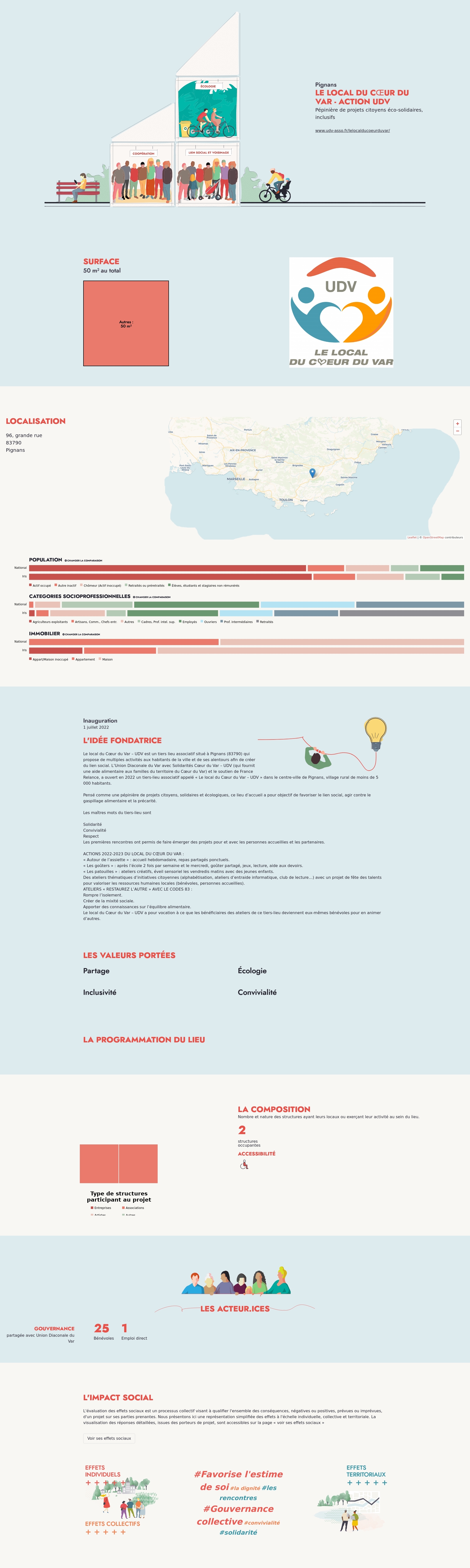 Le local du Cœur du Var – UDV est un tiers lieu associatif situé à Pignans (83790) qui propose de multiples activités aux habitants de la ville et de ses alentours afin de créer du lien social. L’Union Diaconale du Var avec Solidarités Cœur du Var – UDV (qui fournit une aide alimentaire aux familles du territoire du Cœur du Var) et le soutien de France Relance, a ouvert en 2022 un tiers-lieu associatif appelé « Le local du Cœur du Var – UDV » dans le centre-ville de Pignans, village rural de moins de 5 000 habitants.