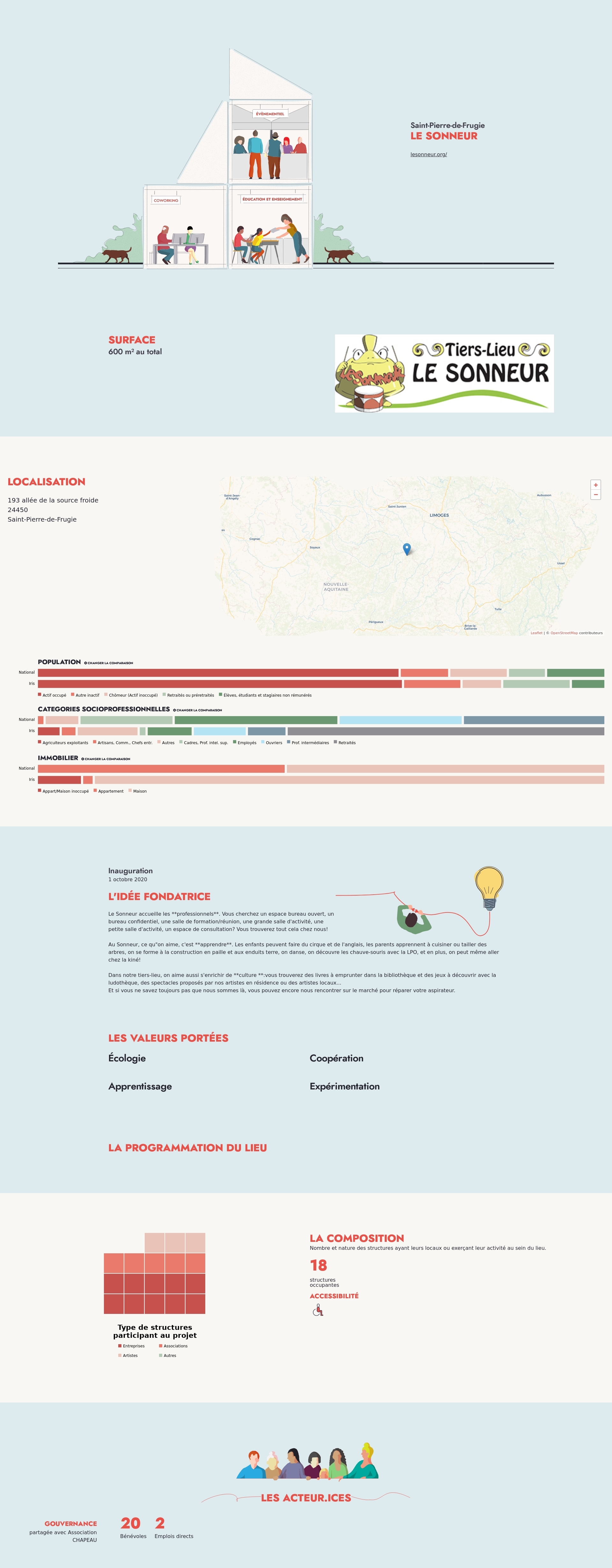Nombre et nature des structures ayant leurs locaux ou exerçant leur activité au sein du lieu.