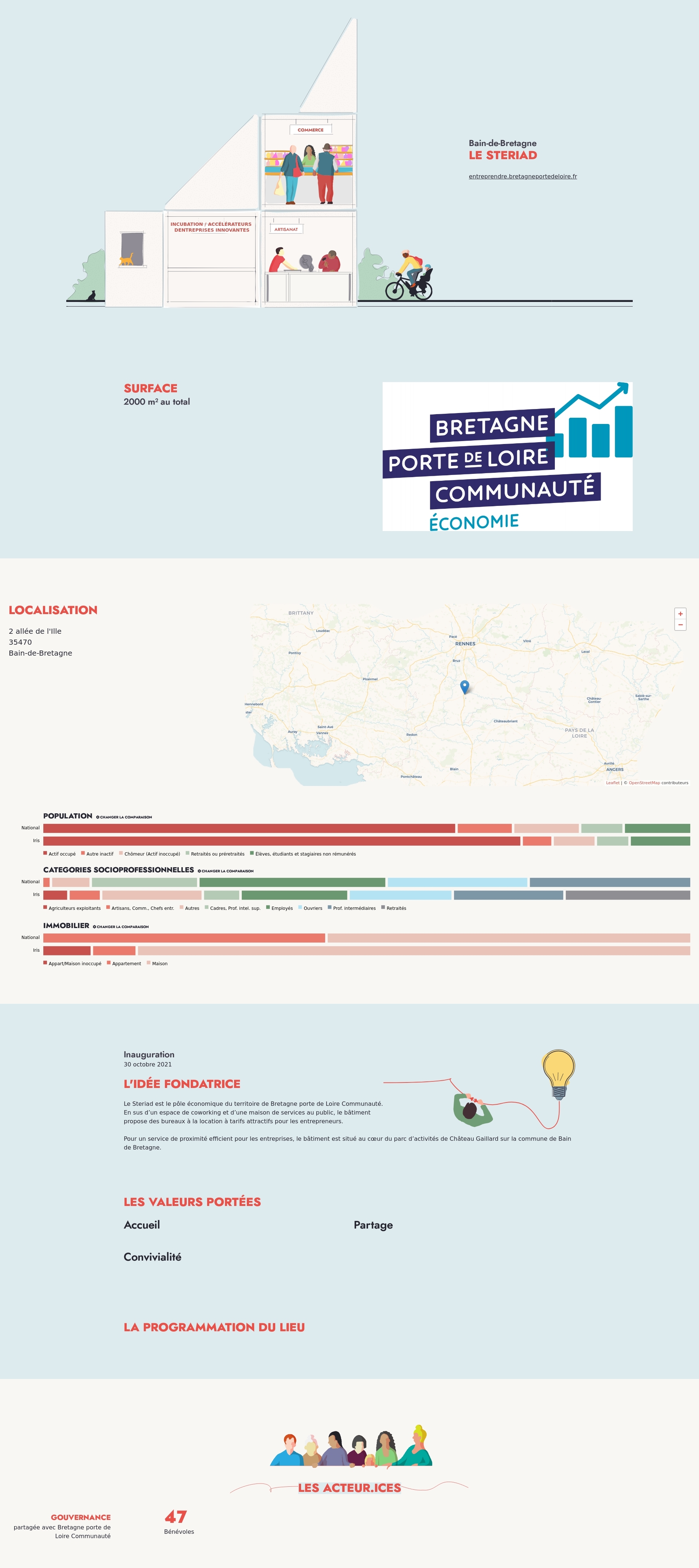 Le Steriad est le pôle économique du territoire de Bretagne porte de Loire Communauté. En sus d’un espace de coworking et d’une maison de services au public, le bâtiment propose des bureaux à la location à tarifs attractifs pour les entrepreneurs.