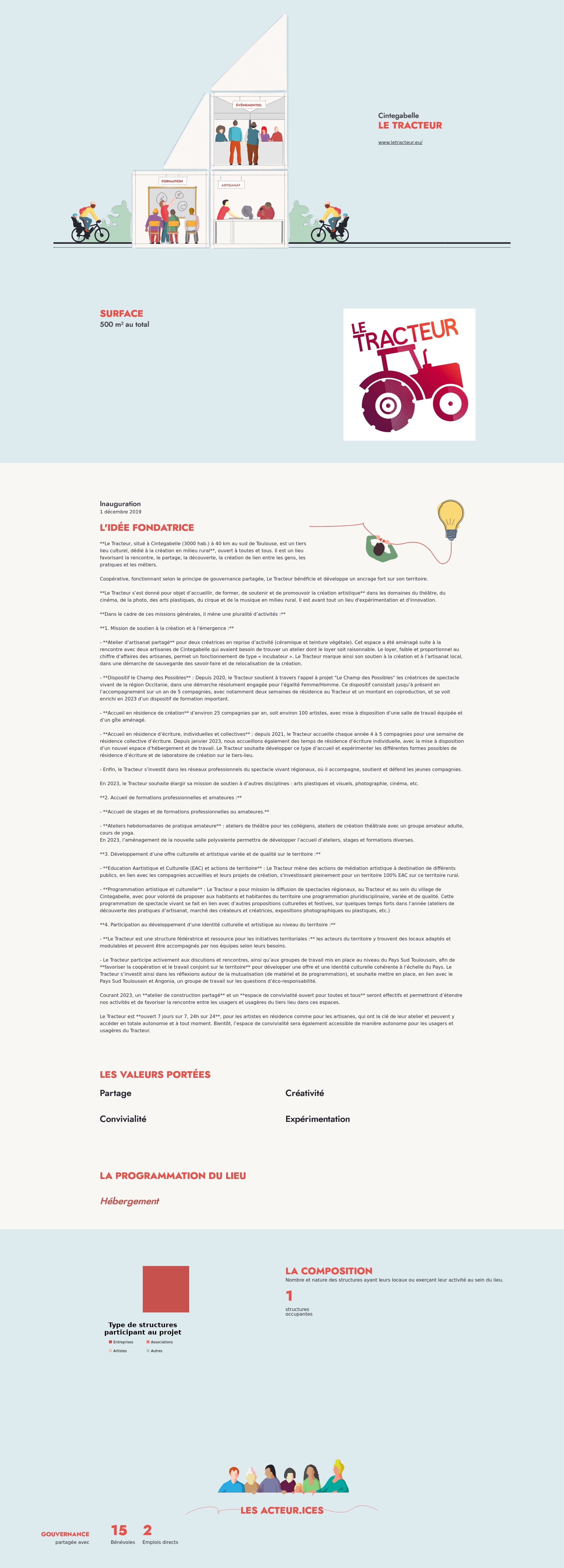 Coopérative, fonctionnant selon le principe de gouvernance partagée, Le Tracteur bénéficie et développe un ancrage fort sur son territoire.