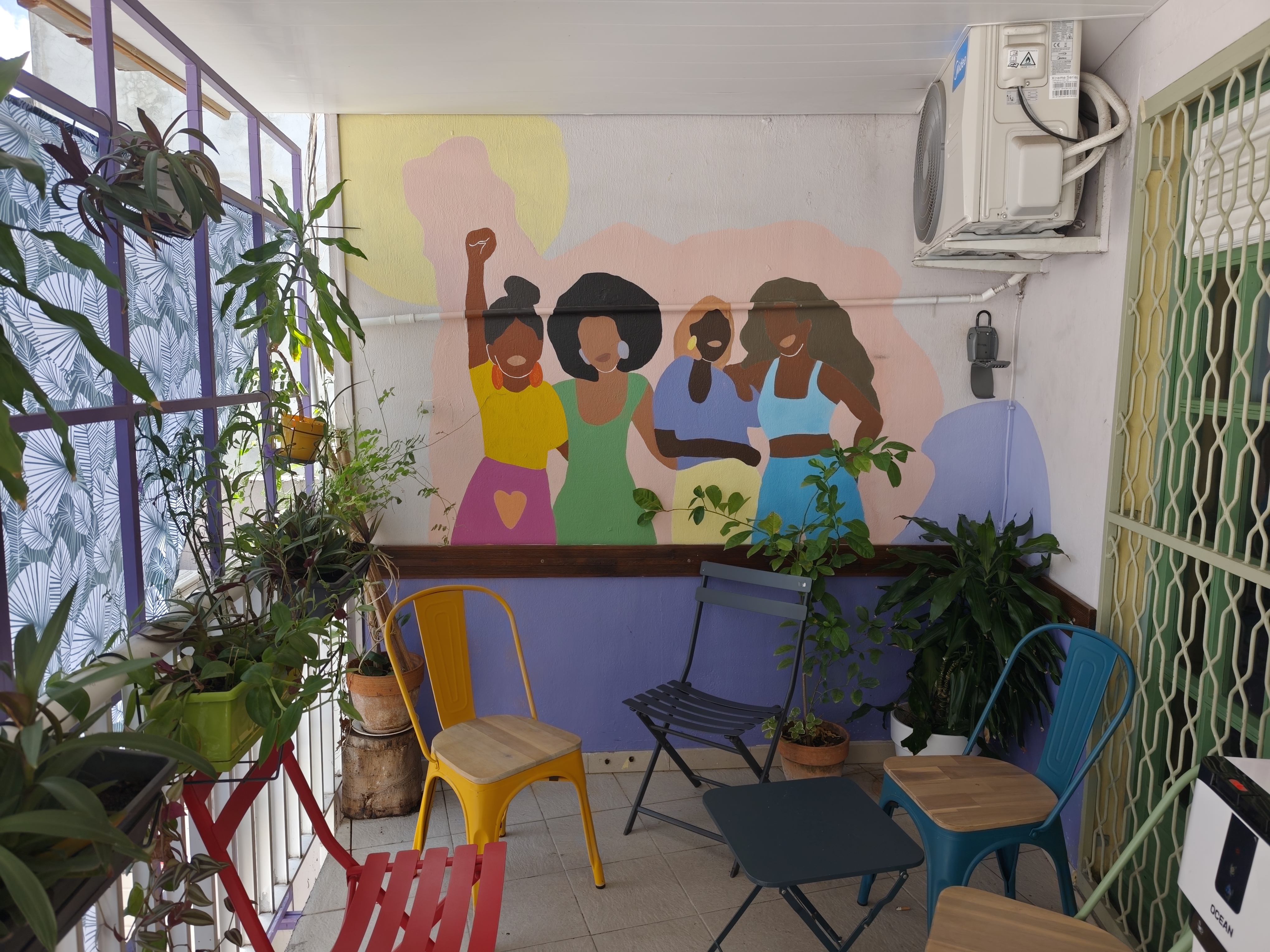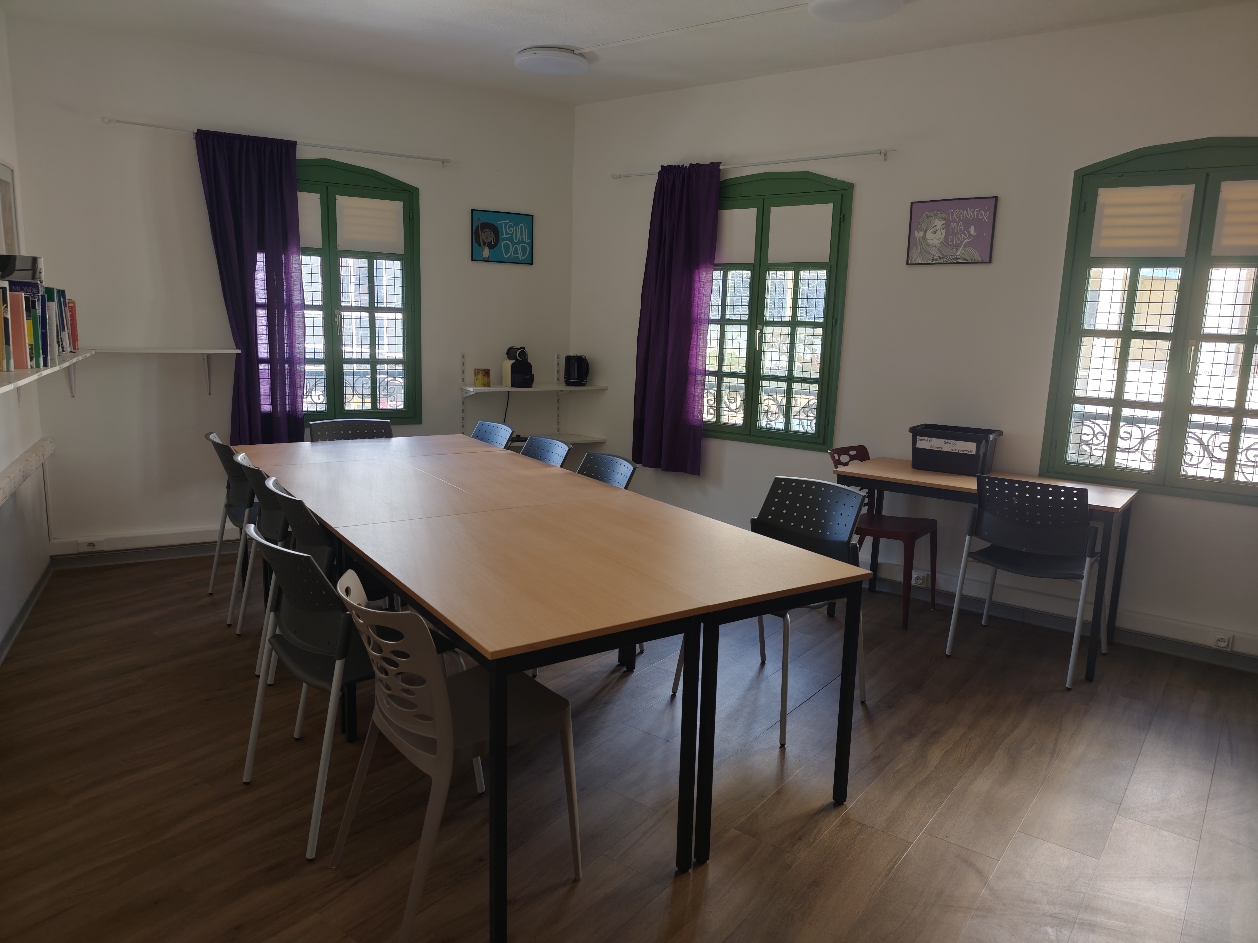 Cet espace hybride de travail, de rencontre et de co-création est un lieu sécurisé et sécurisant qui accueille les femmes et les jeunes en situation de vulnérabilité et soutient leur insertion socio-économique.