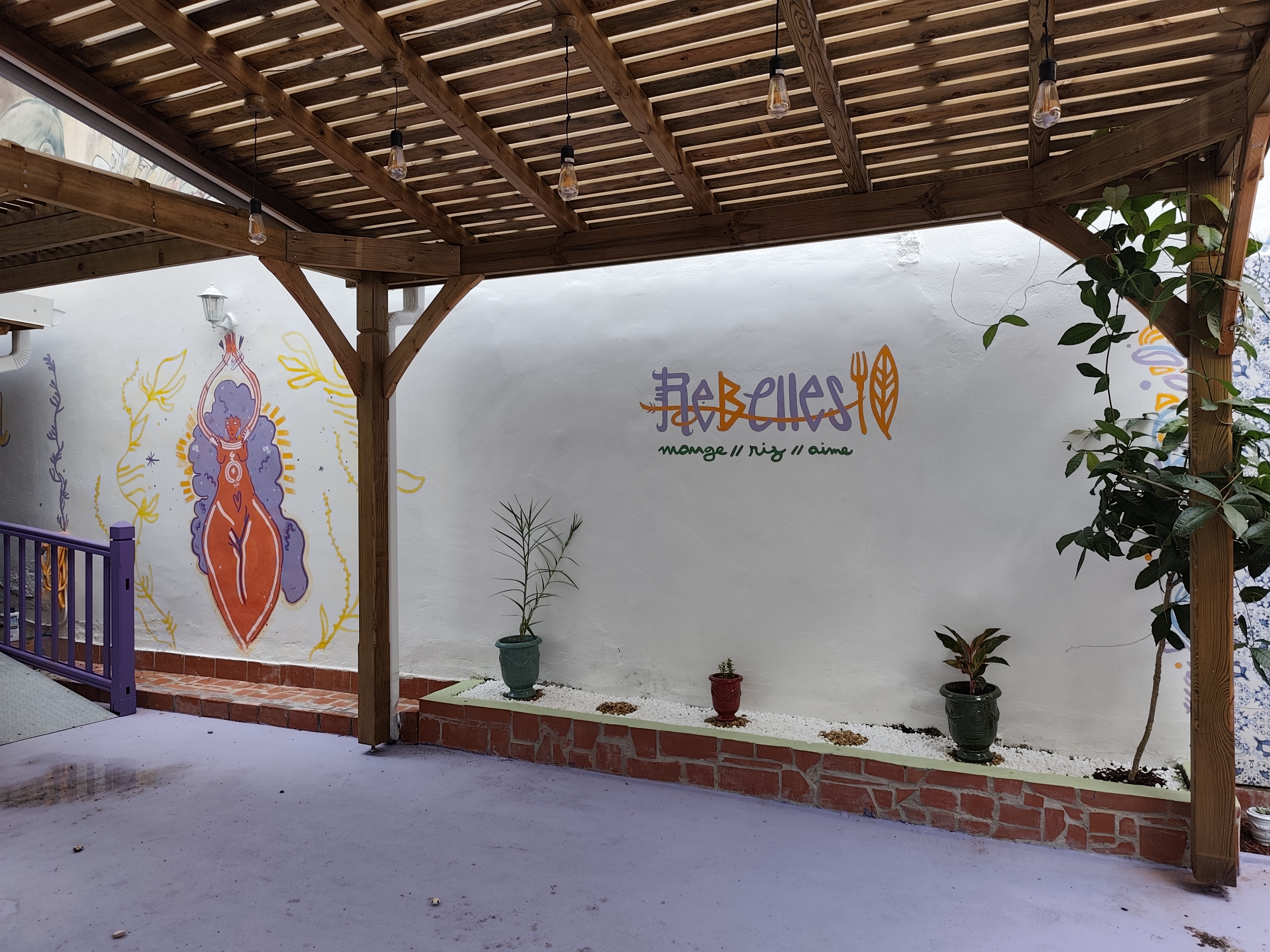 Le Trois-Lieu se veut aussi un espace de rencontre et d’engagement citoyen, notamment avec son jardin événementiel, transformé en petit snack associatif : Rebelles, qui vise à soutenir la réinsertion sociale et économique de femmes migrantes issues de quartiers prioritaires de Fort-de-France, et victimes de violences. Les bénéficiaires y sont formées aux bases de la cuisine afin de les aider à construire leur projet professionnel en lien avec la petite restauration.