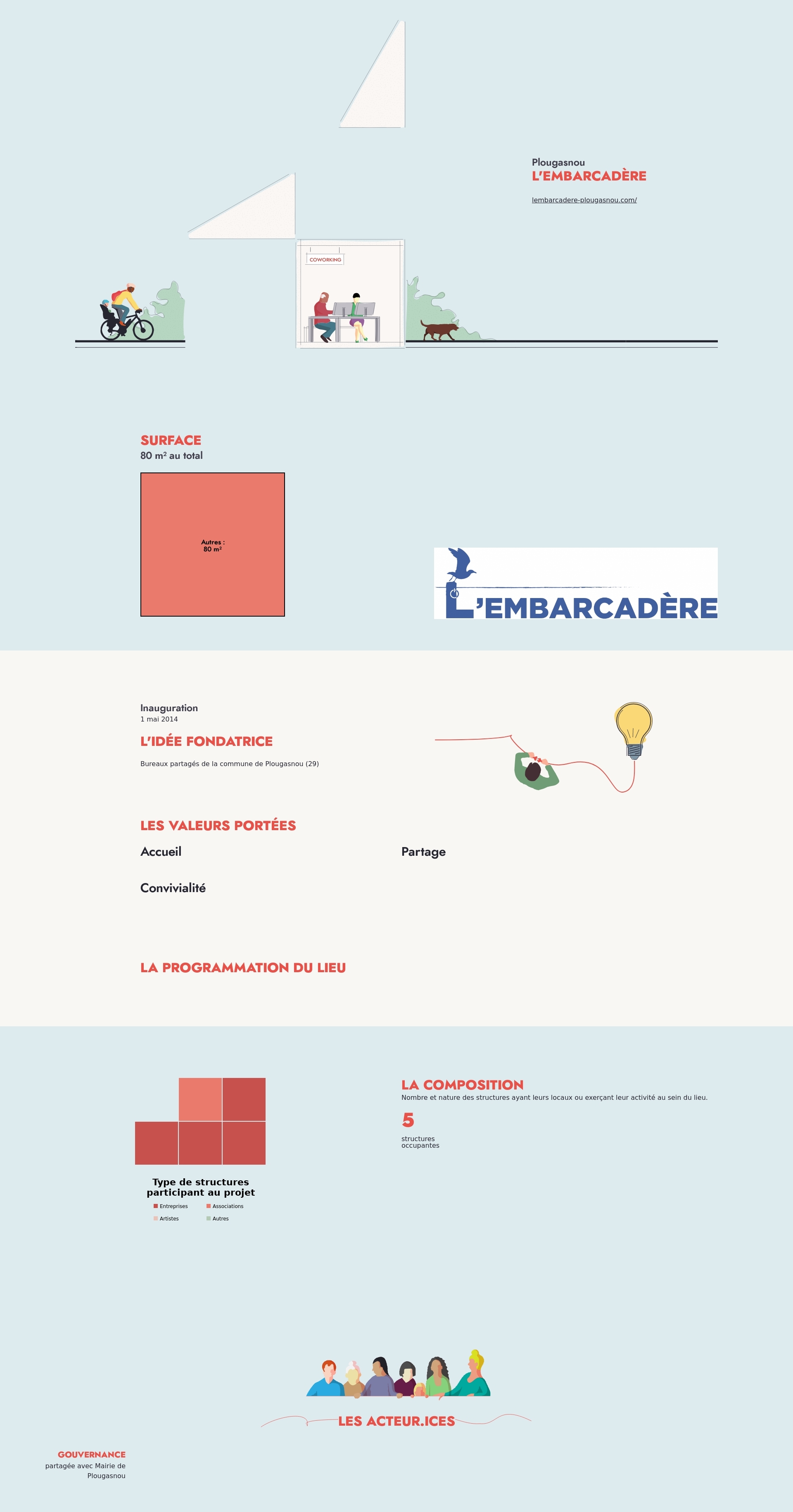 Nombre et nature des structures ayant leurs locaux ou exerçant leur activité au sein du lieu.