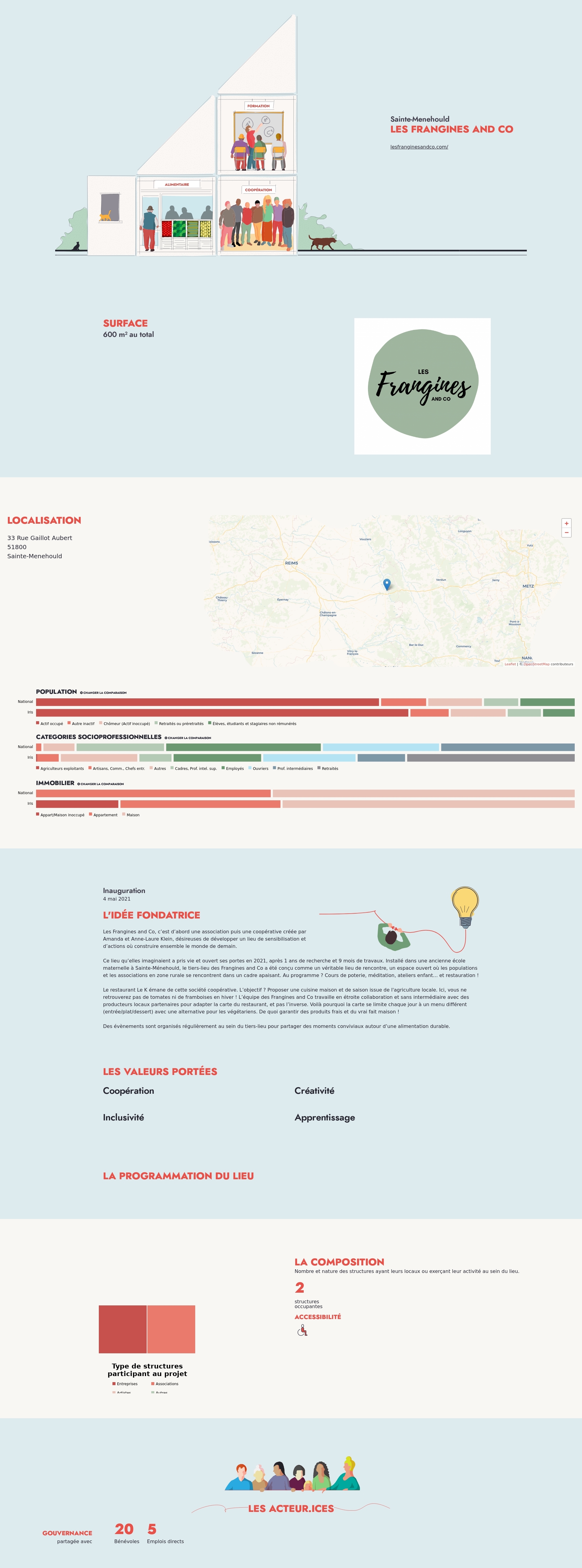 Ce lieu qu’elles imaginaient a pris vie et ouvert ses portes en 2021, après 1 ans de recherche et 9 mois de travaux. Installé dans une ancienne école maternelle à Sainte-Ménehould, le tiers-lieu des Frangines and Co a été conçu comme un véritable lieu de rencontre, un espace ouvert où les populations et les associations en zone rurale se rencontrent dans un cadre apaisant. Au programme ? Cours de poterie, méditation, ateliers enfant… et restauration !