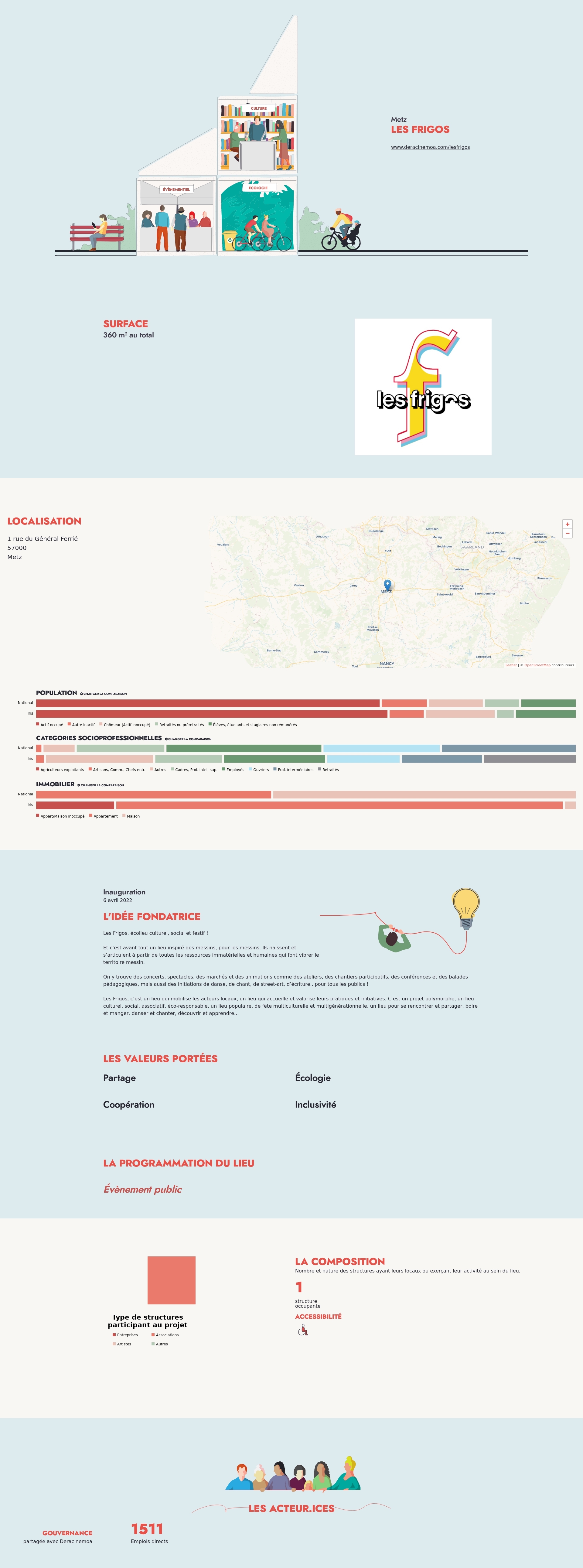 Les Frigos, c’est un lieu qui mobilise les acteurs locaux, un lieu qui accueille et valorise leurs pratiques et initiatives. C’est un projet polymorphe, un lieu culturel, social, associatif, éco-responsable, un lieu populaire, de fête multiculturelle et multigénérationnelle, un lieu pour se rencontrer et partager, boire et manger, danser et chanter, découvrir et apprendre...