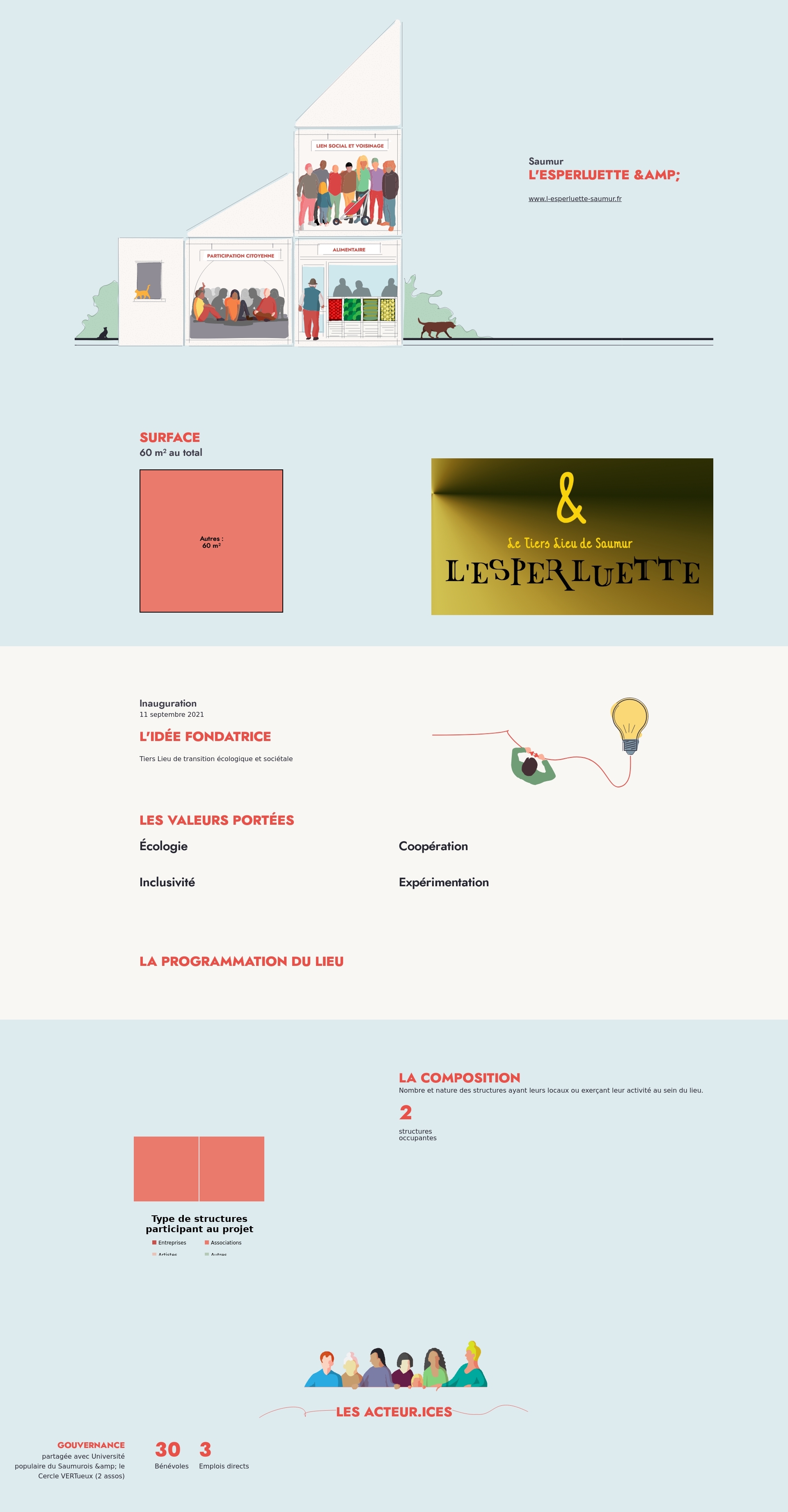 Nombre et nature des structures ayant leurs locaux ou exerçant leur activité au sein du lieu.